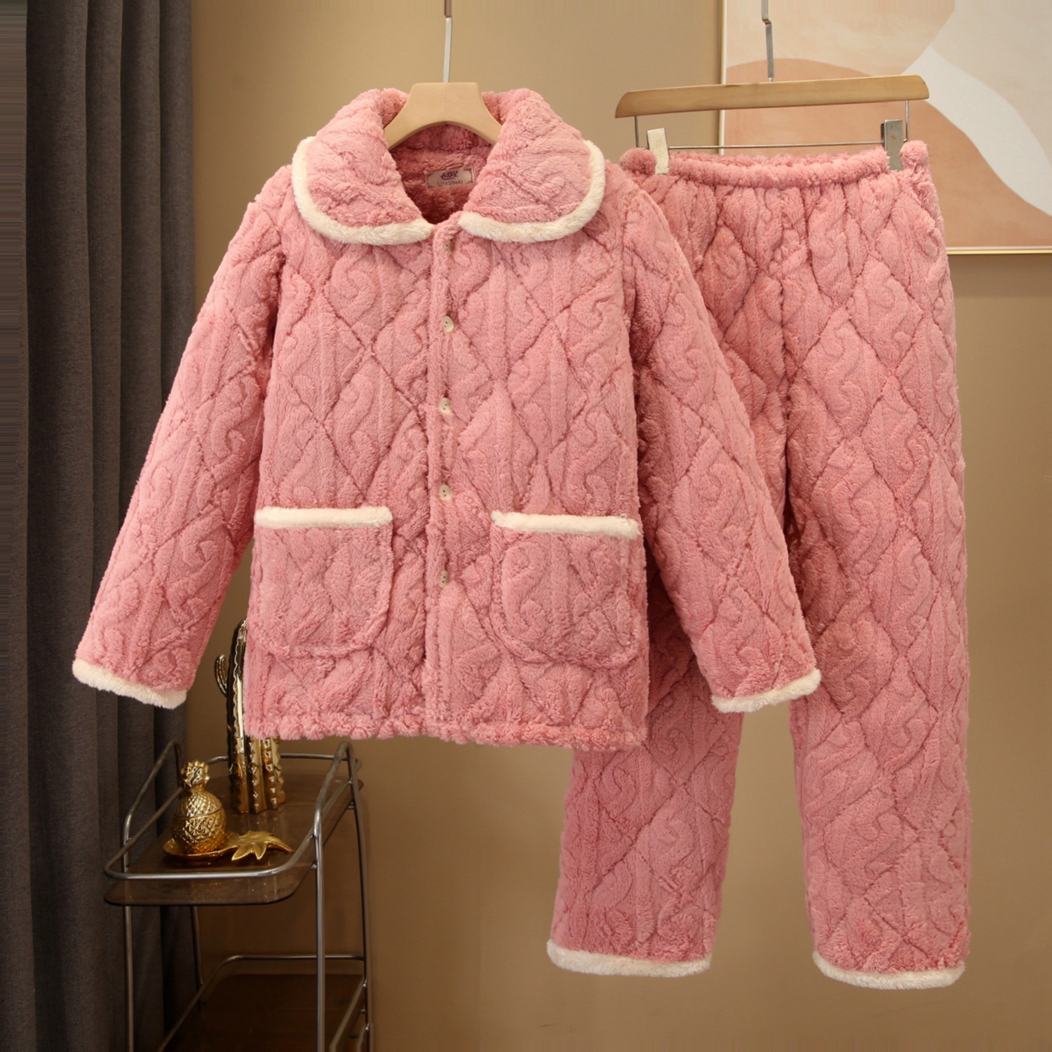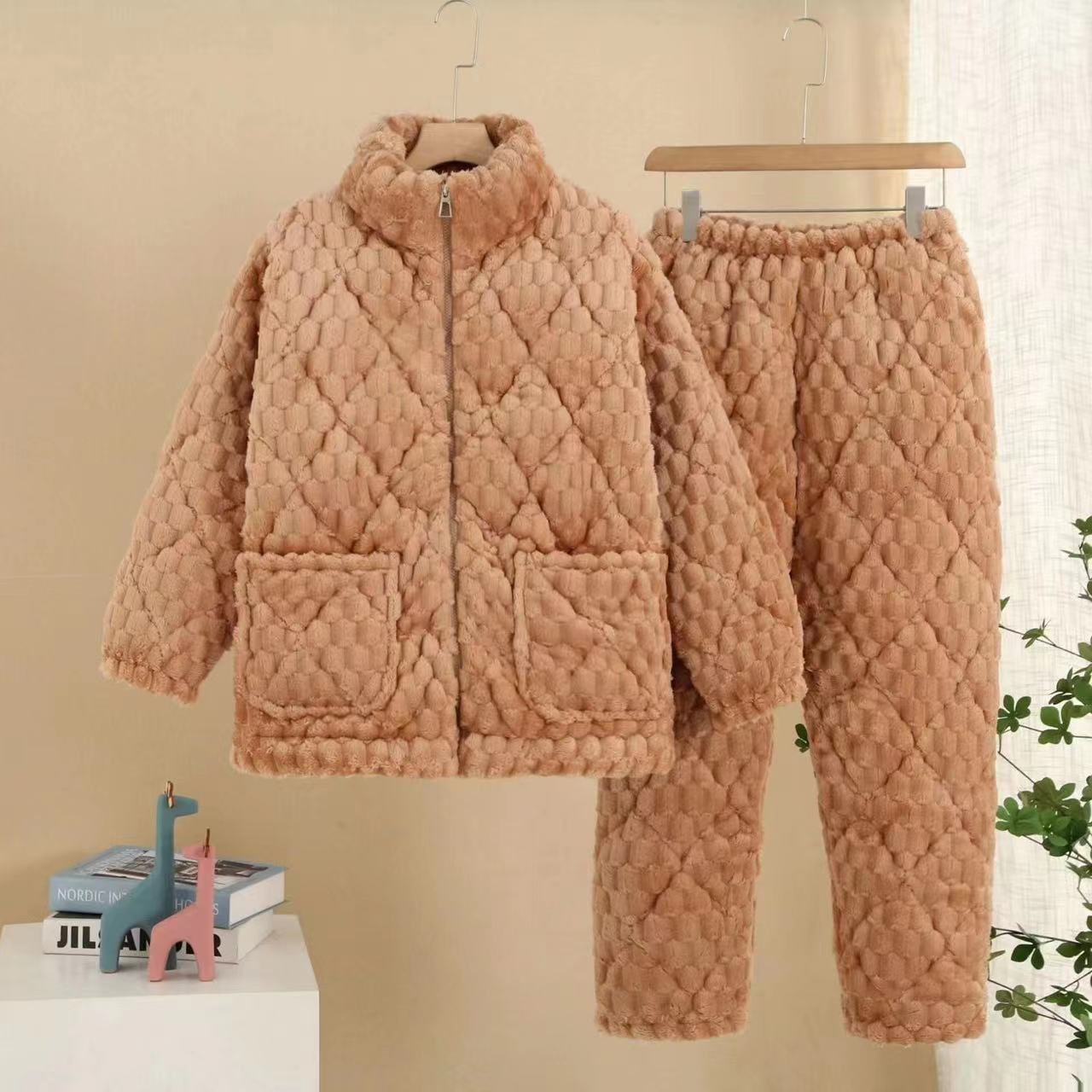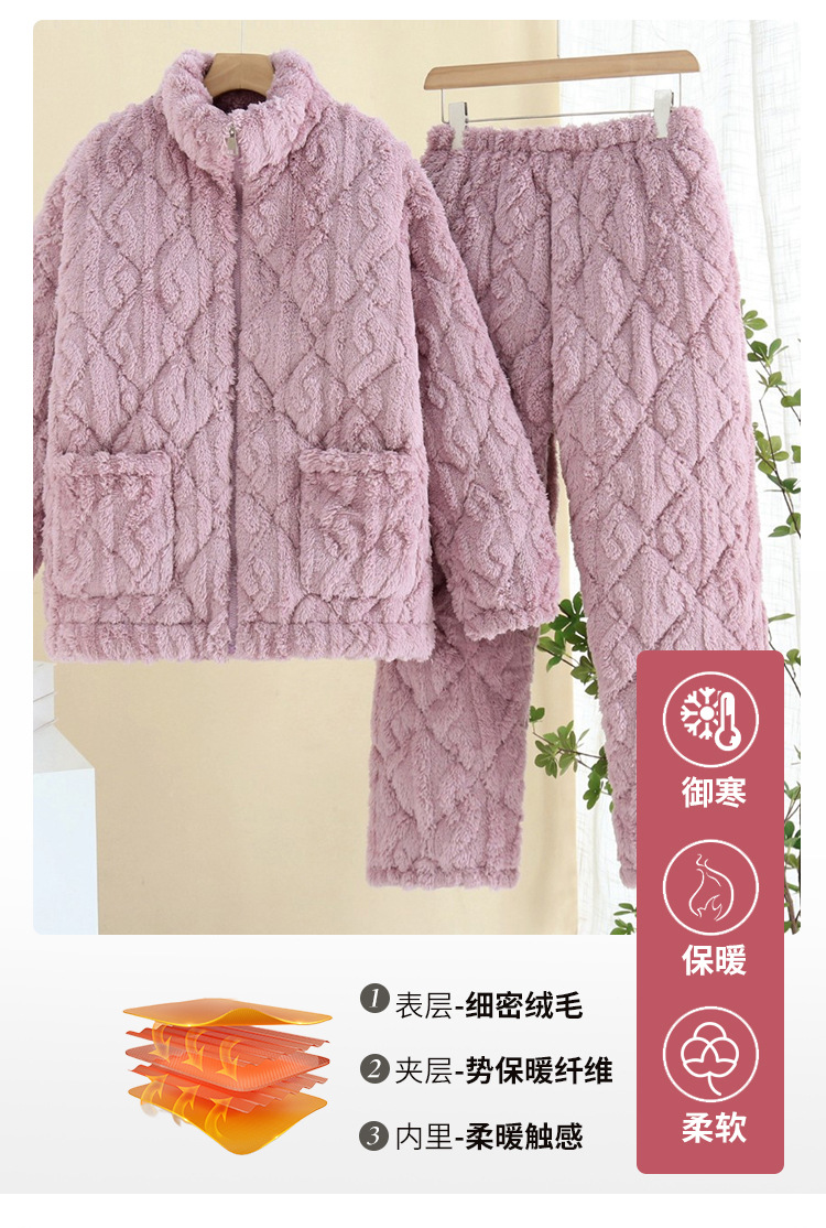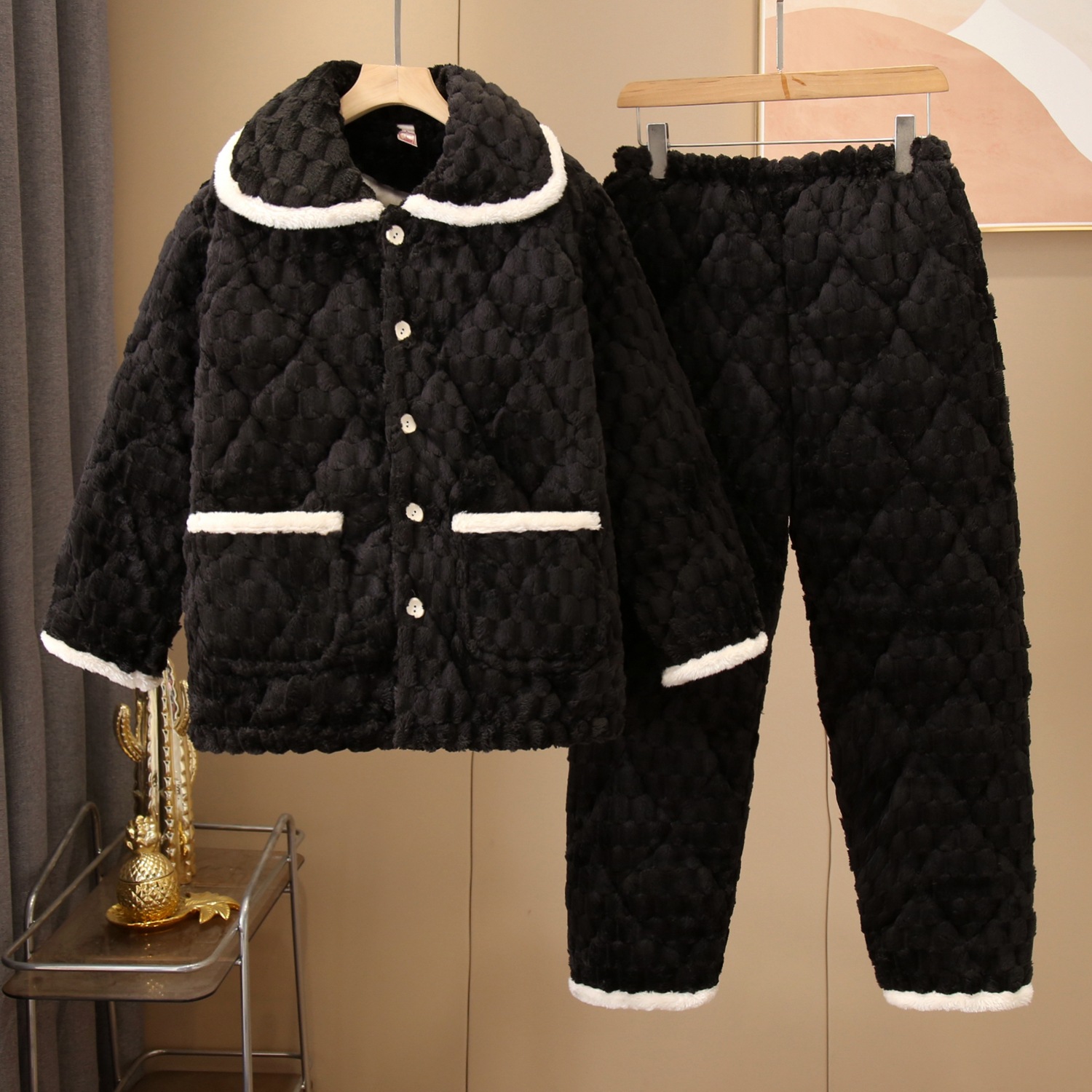 2025 겨울 여성용 잠옷 신상품 3중 벨벳 두꺼운 누빔 보온 코랄 벨벳 홈웨어 세트 외출복으로도 가능