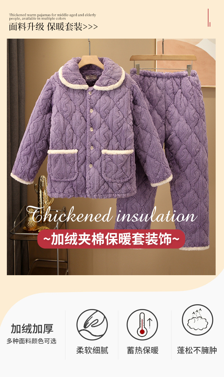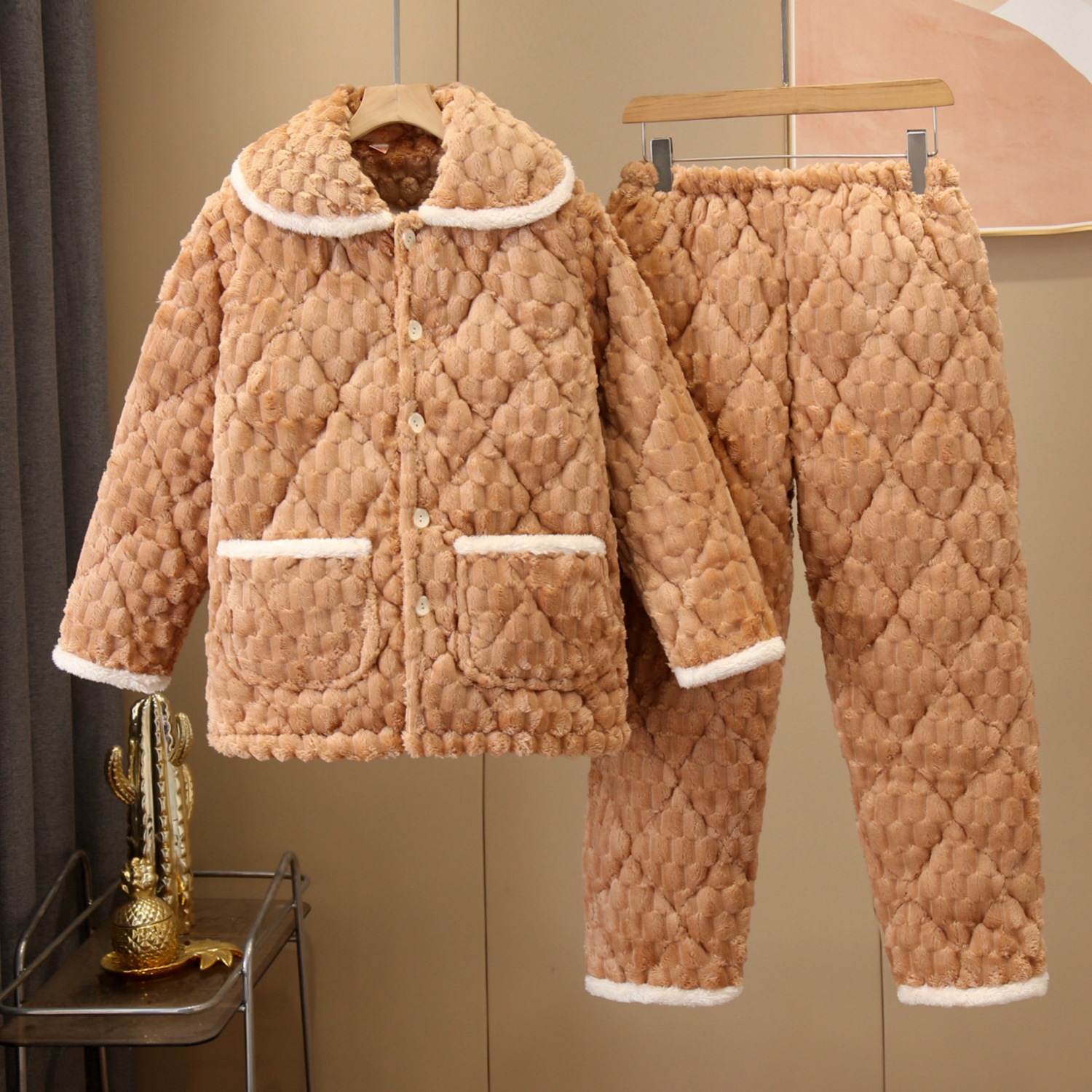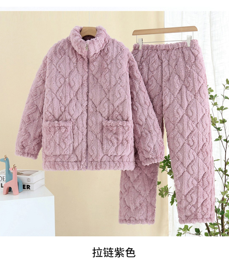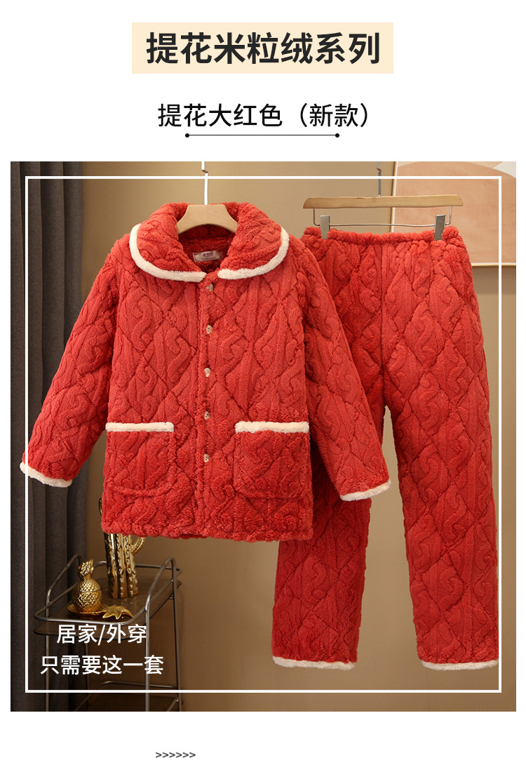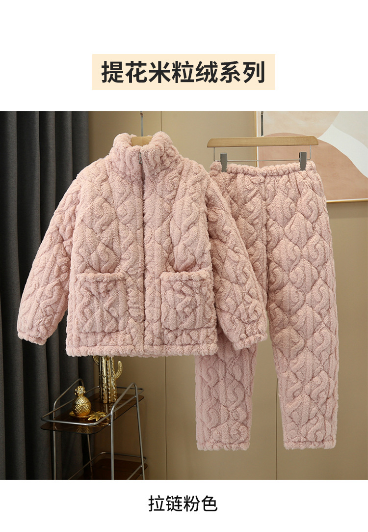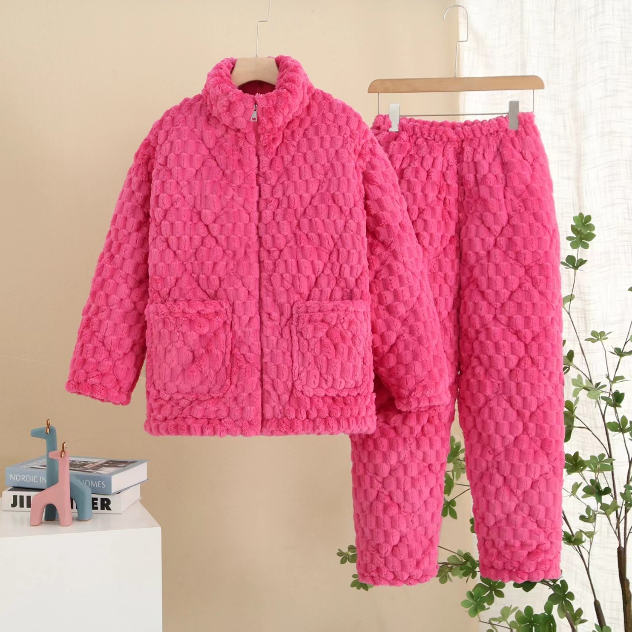 2025 겨울 여성용 잠옷 신상품 3중 벨벳 두꺼운 누빔 보온 코랄 벨벳 홈웨어 세트 외출복으로도 가능