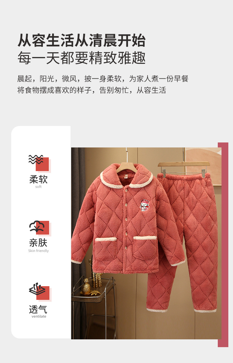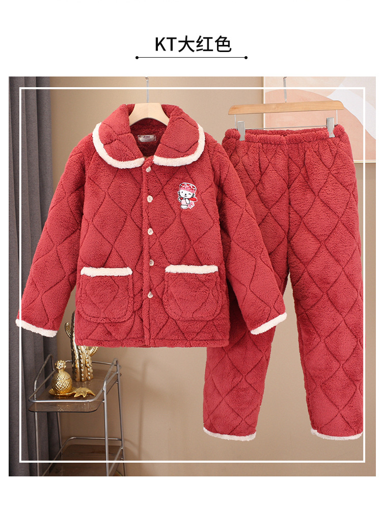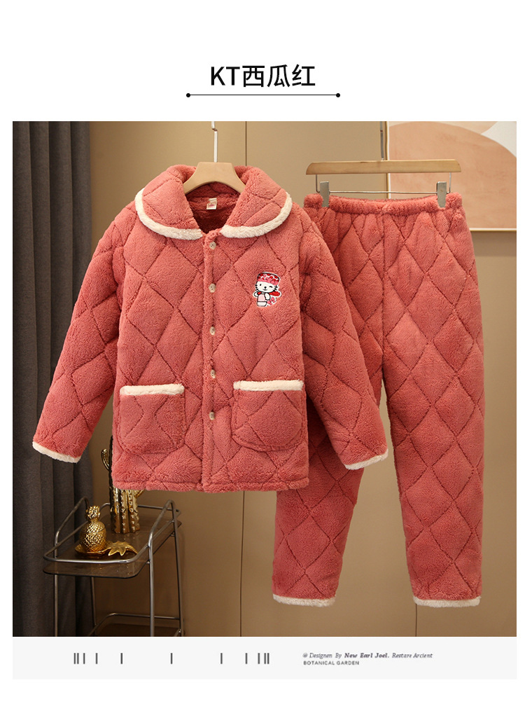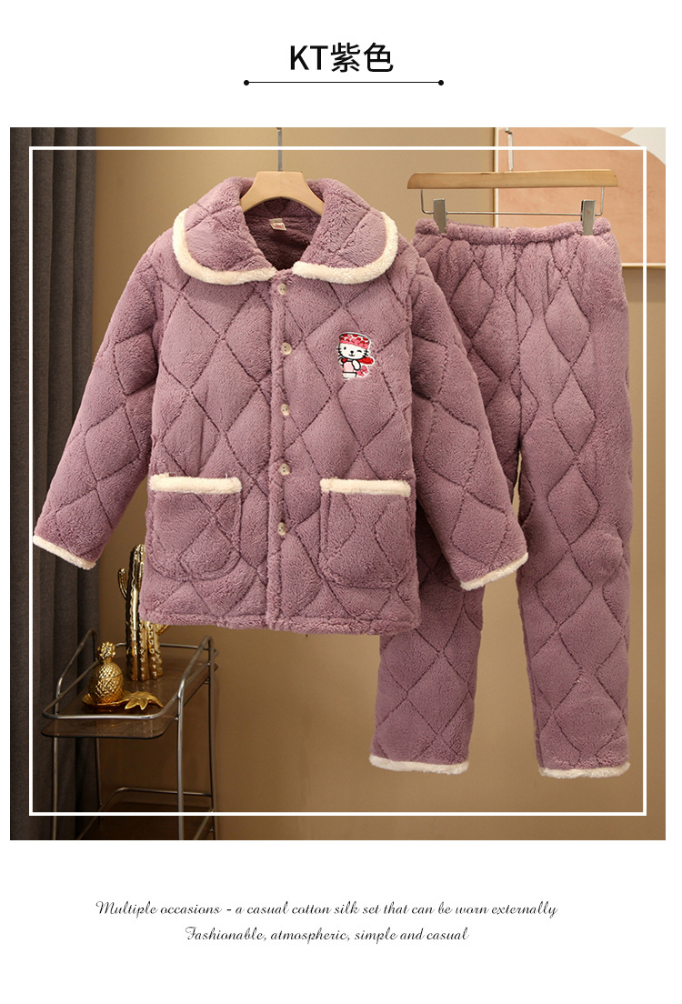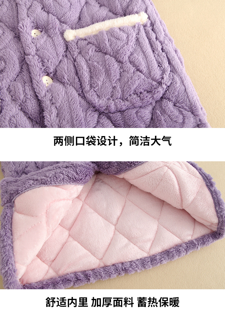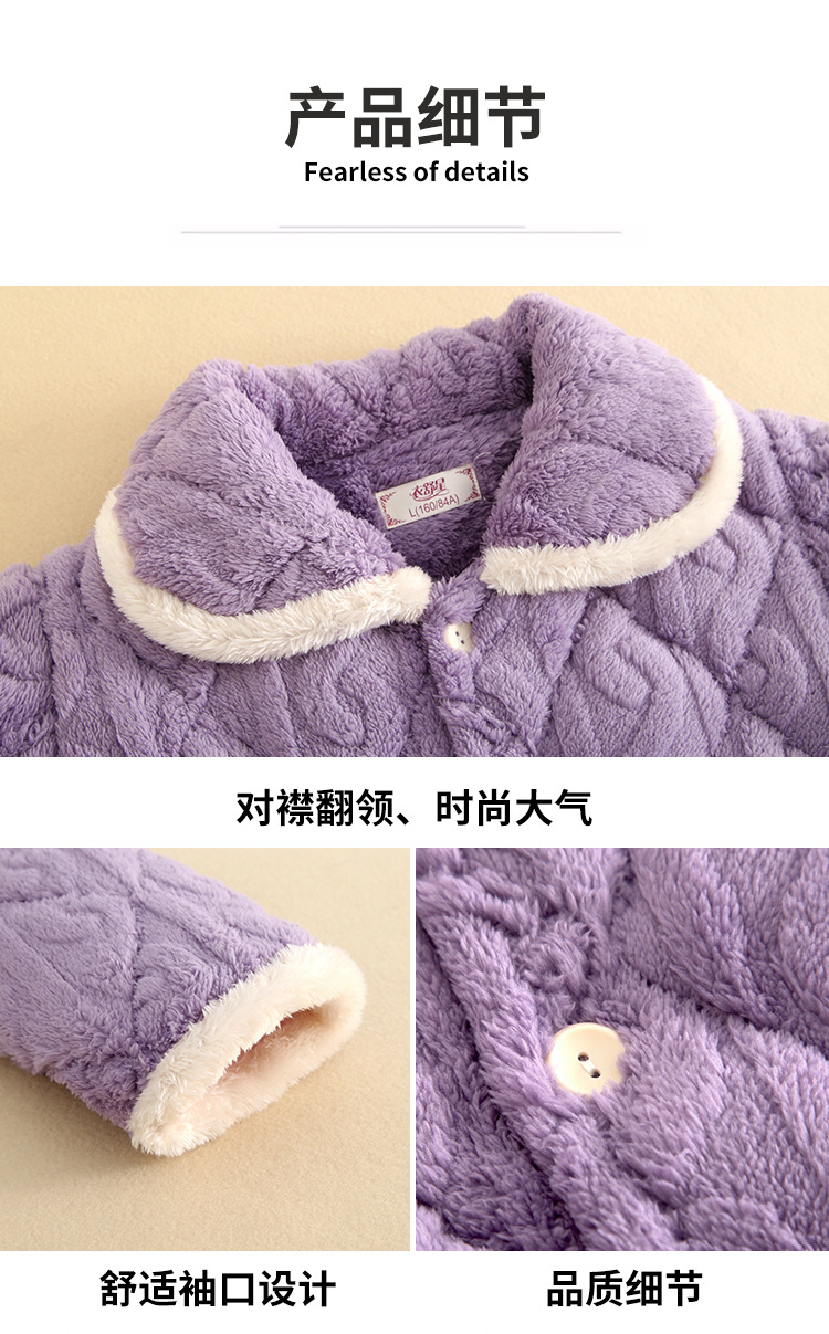 2025 겨울 여성용 잠옷 신상품 3중 벨벳 두꺼운 누빔 보온 코랄 벨벳 홈웨어 세트 외출복으로도 가능