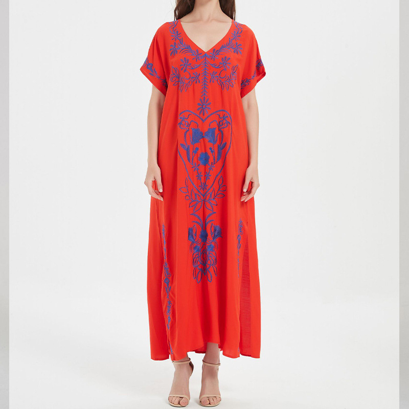 유럽과 미국 대외 무역 아마존 크로스 국경 비치 블라우스 면 자수 비치 가운 휴가 해변 원피스 선 스크린 의류