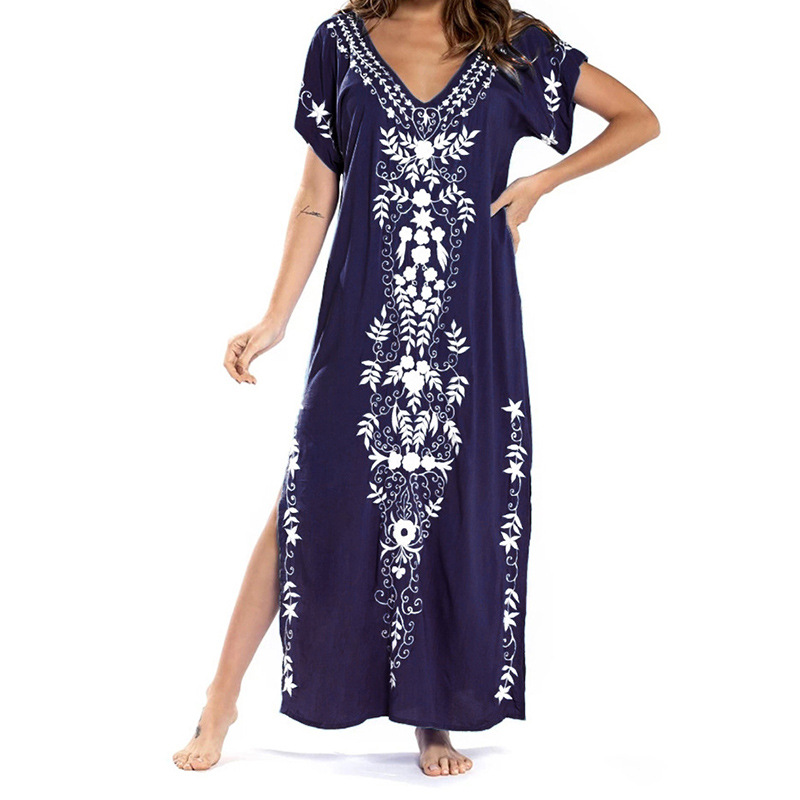 유럽과 미국 대외 무역 아마존 크로스 국경 비치 블라우스 면 자수 비치 가운 휴가 해변 원피스 선 스크린 의류스토어 가기