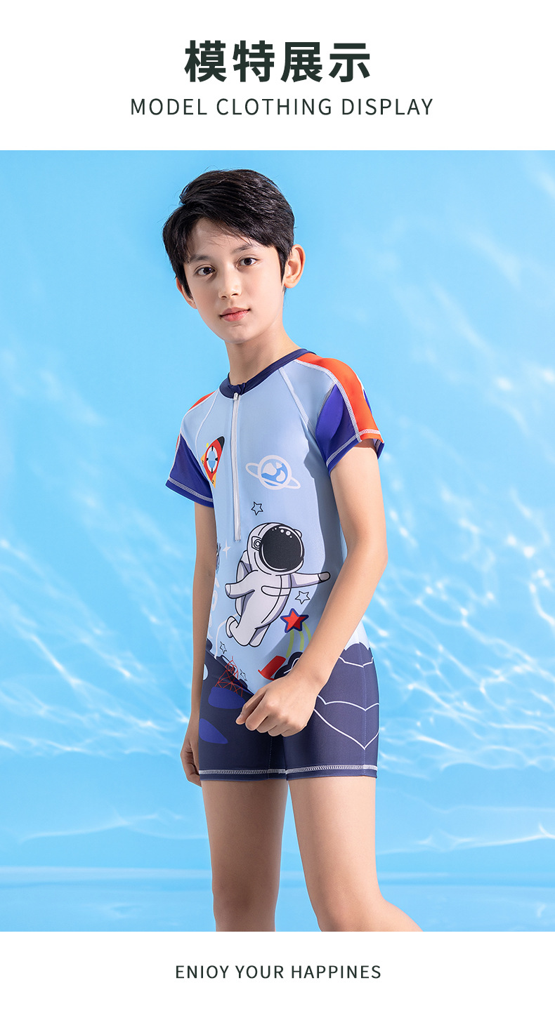 새로운 어린이 수영복 소년 '중간 및 큰 어린이 십대 패션 세트 소년 우주 비행사 온천 속건 수영복