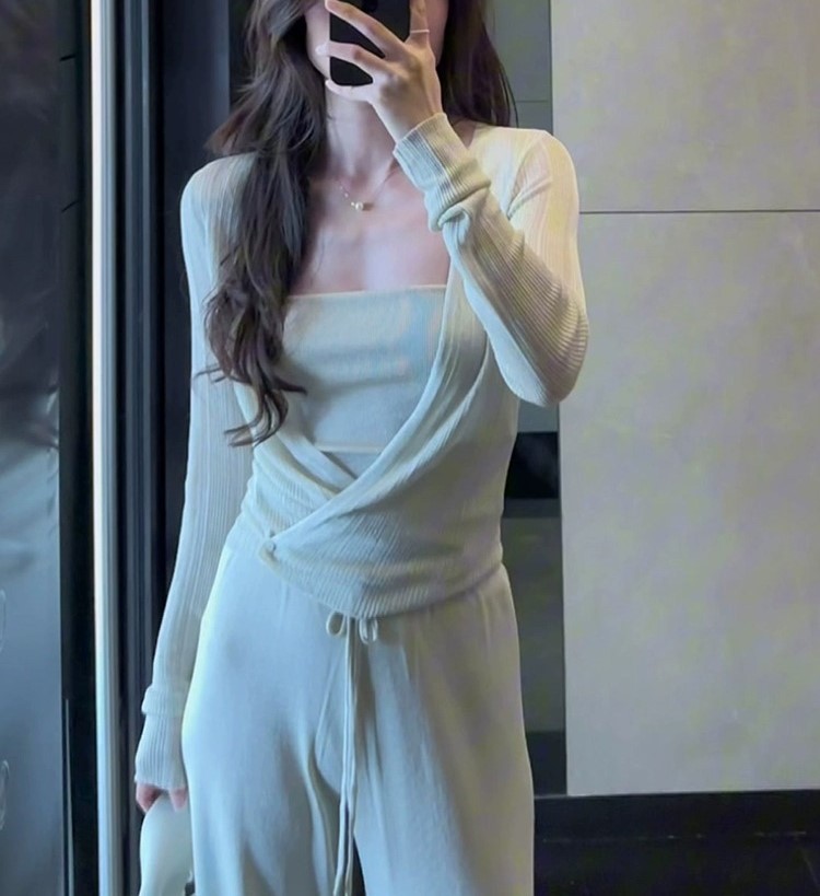 아이스 실크 니트 자외선 차단제 카디건 코트 여성용 여름 얇은 조끼 바깥 숄 블라우스 에어컨 셔츠 짧은 탑