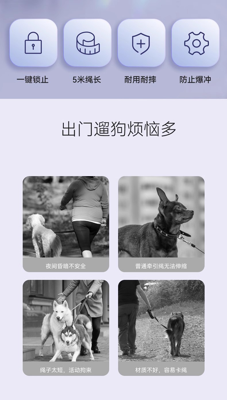 활발하고 화려한 개 가죽 끈 애완 동물 무료 텔레스코픽 빠른 제동 개 가죽 끈 밤 이중 조명 안티 손실스토어 가기