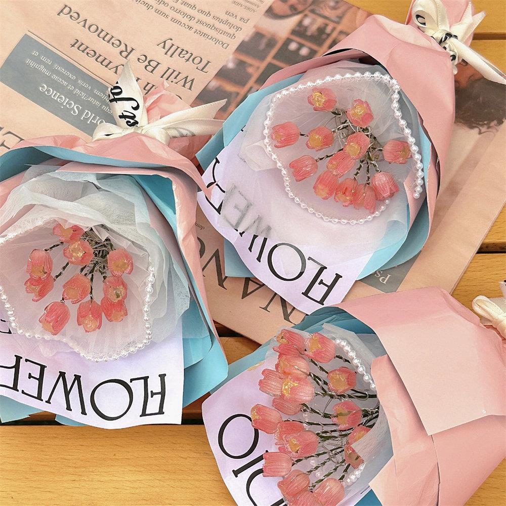 여자 친구를위한 새로운 미니 꽃다발 가방 시뮬레이션 수제 재료 야간 조명 diy 튤립 꽃다발 선물스토어 가기