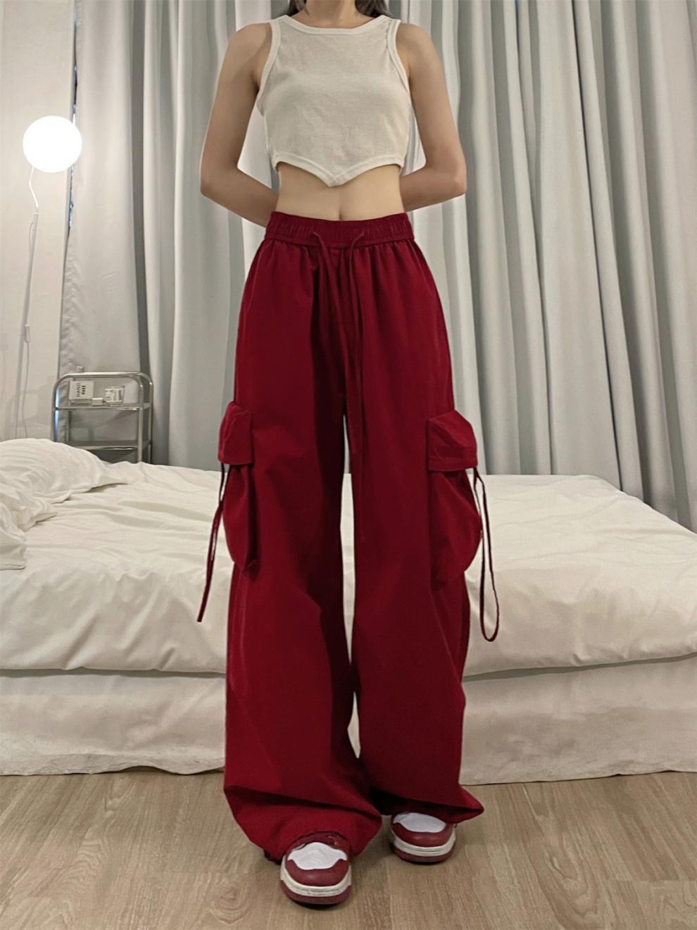 도파민 작업복 여성용 여름 얇은 하이 웨이스트 스트레이트 와이드 레그 캐주얼 스파이스 걸 속건 아메리칸 스포츠 팬츠스토어 가기