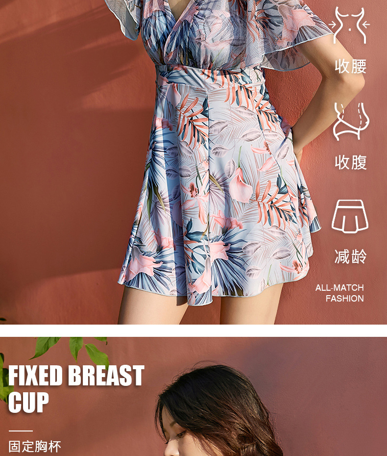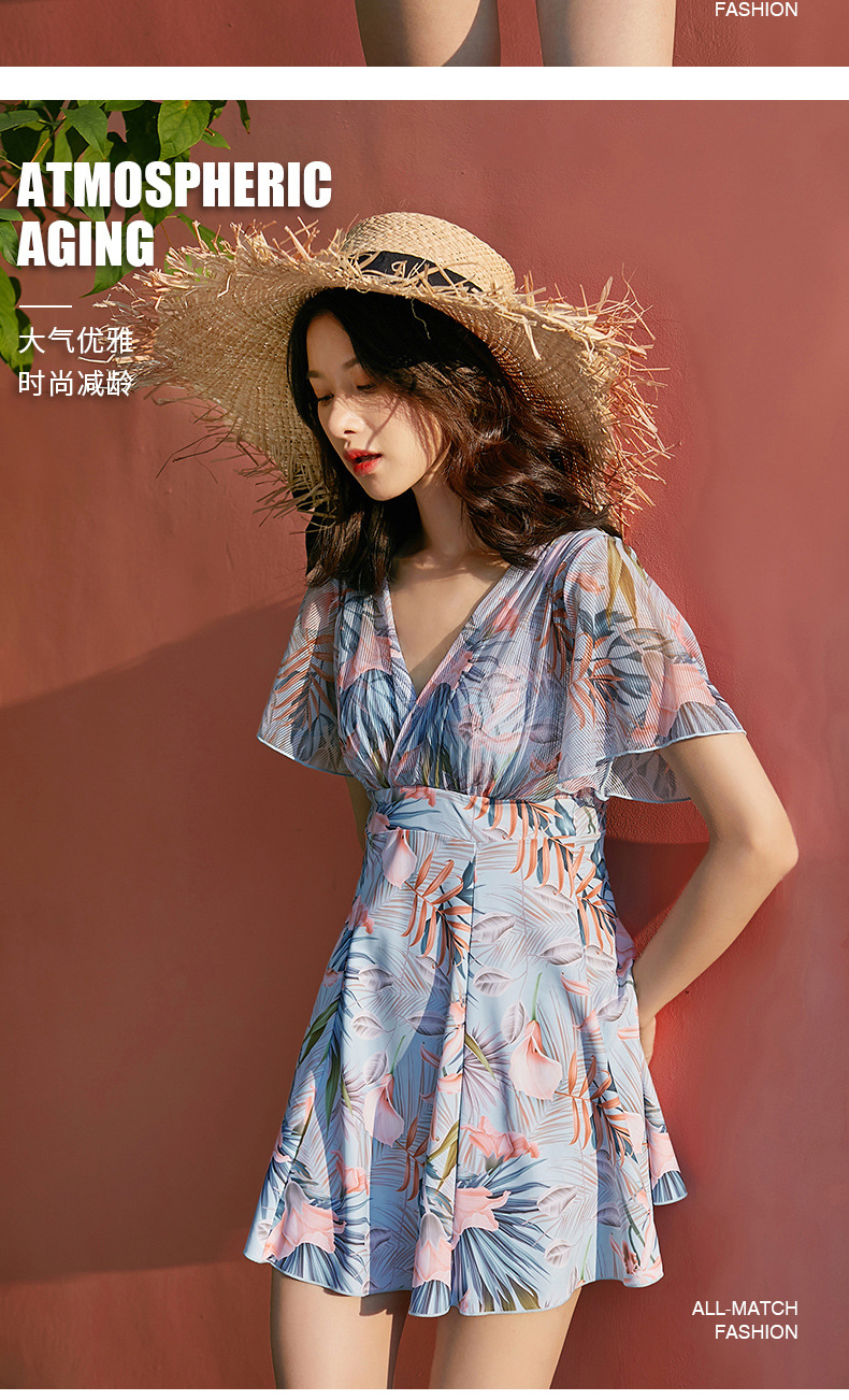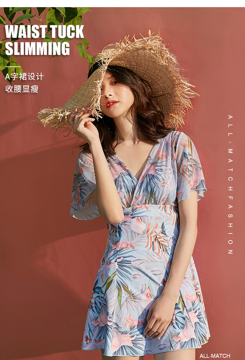 플러스 사이즈 여성의 수영복 스타일 인쇄 슬림 어깨 커버 보수적 인 원피스 수영복 온천 해변 휴가
