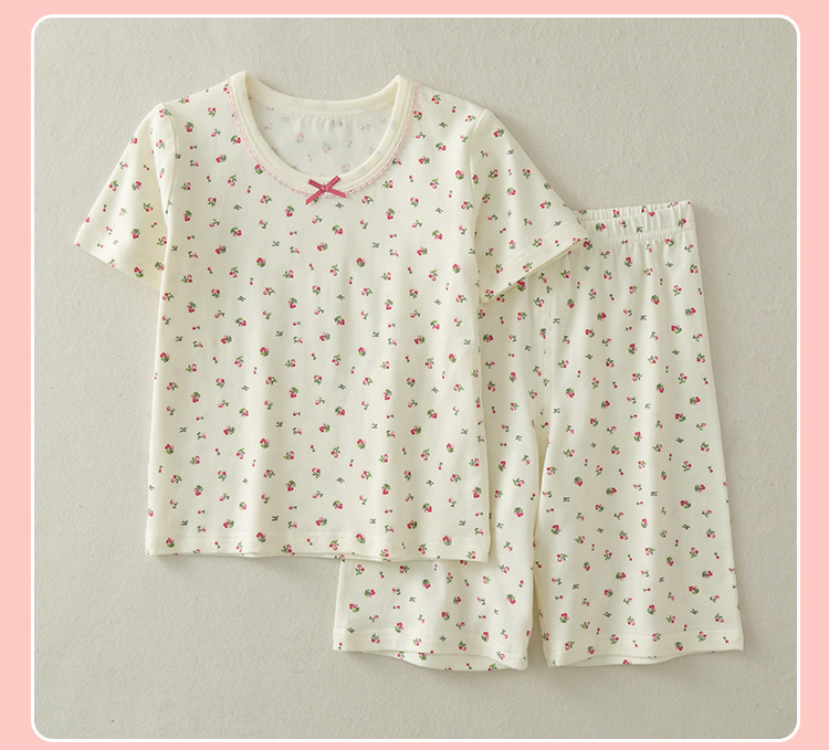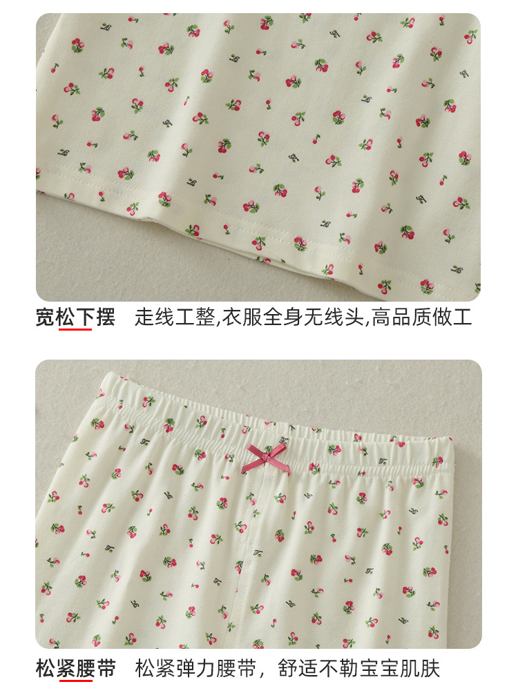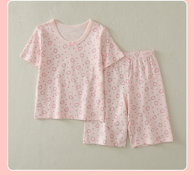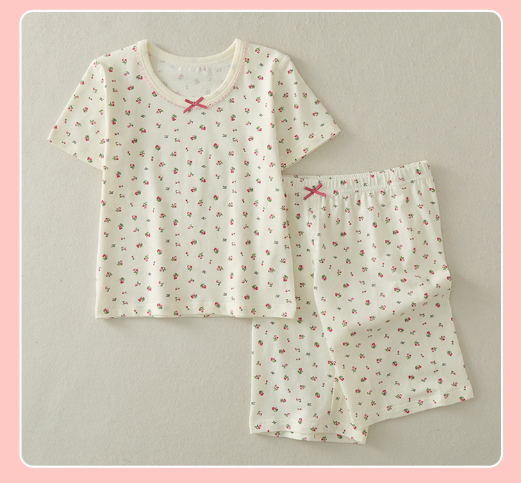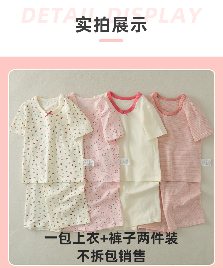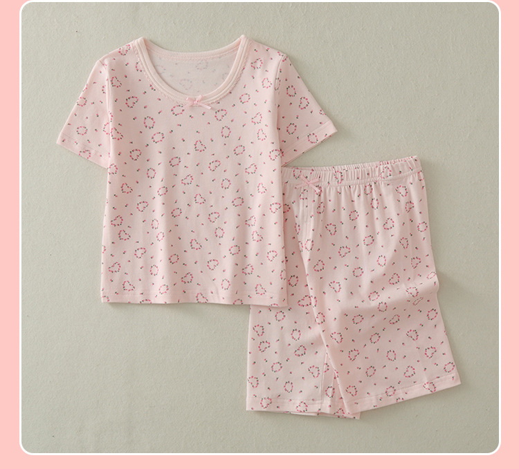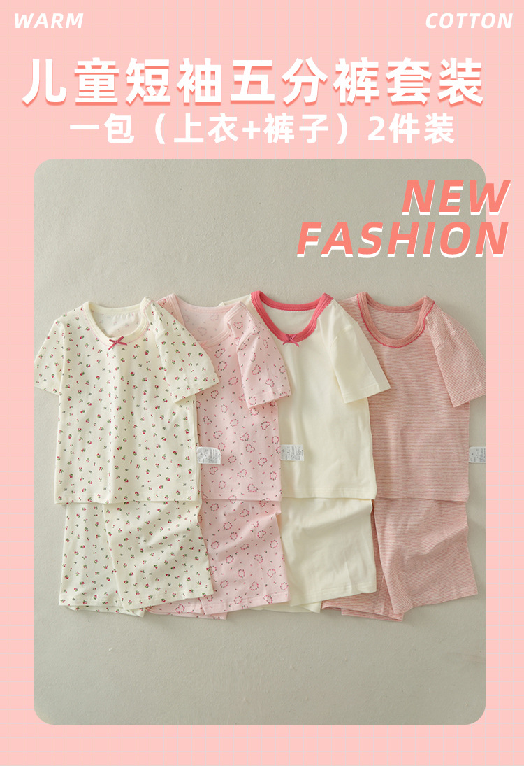 여아 반팔 세트 2023 새 아동용 반팔 5 점 바지 여름 면 가정복 여자 아기 용 투피스 세트