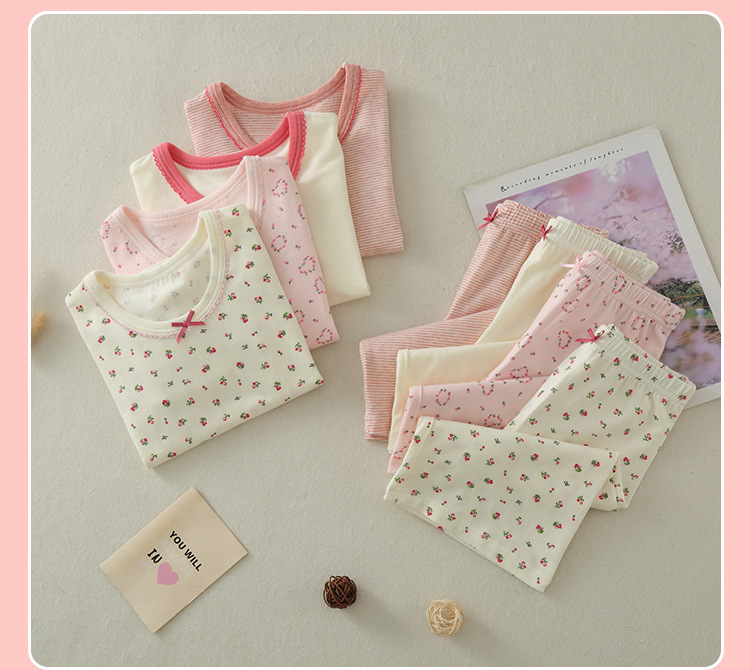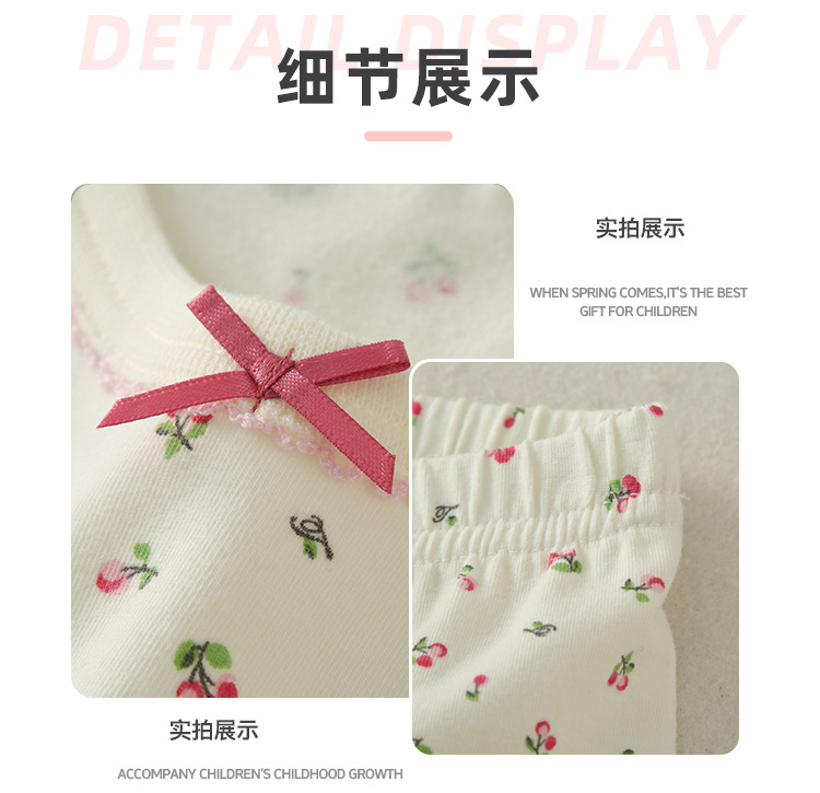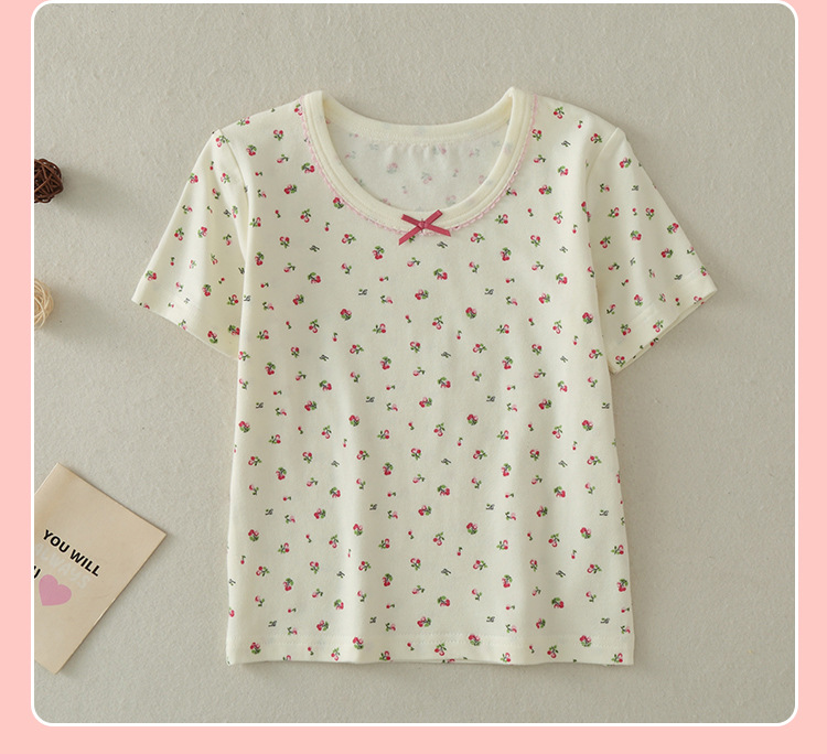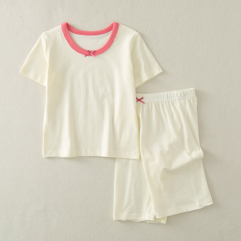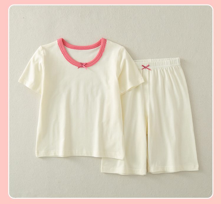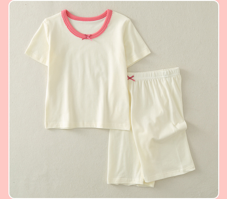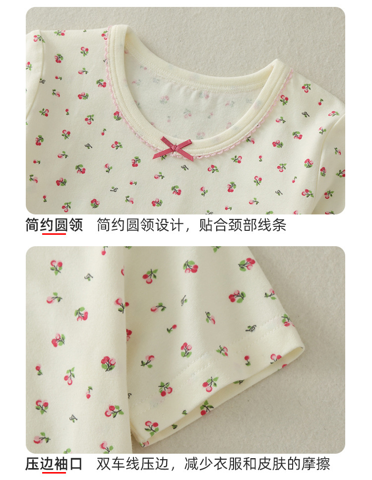 여아 반팔 세트 2023 새 아동용 반팔 5 점 바지 여름 면 가정복 여자 아기 용 투피스 세트