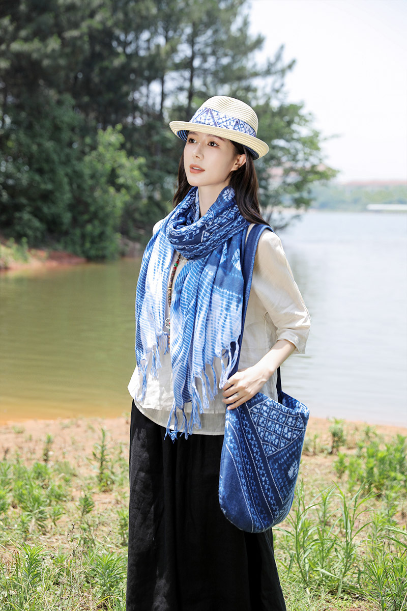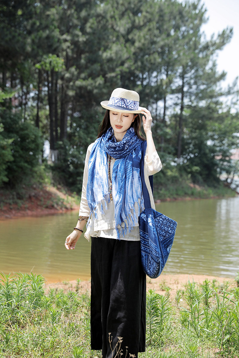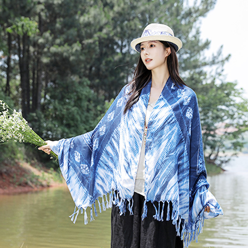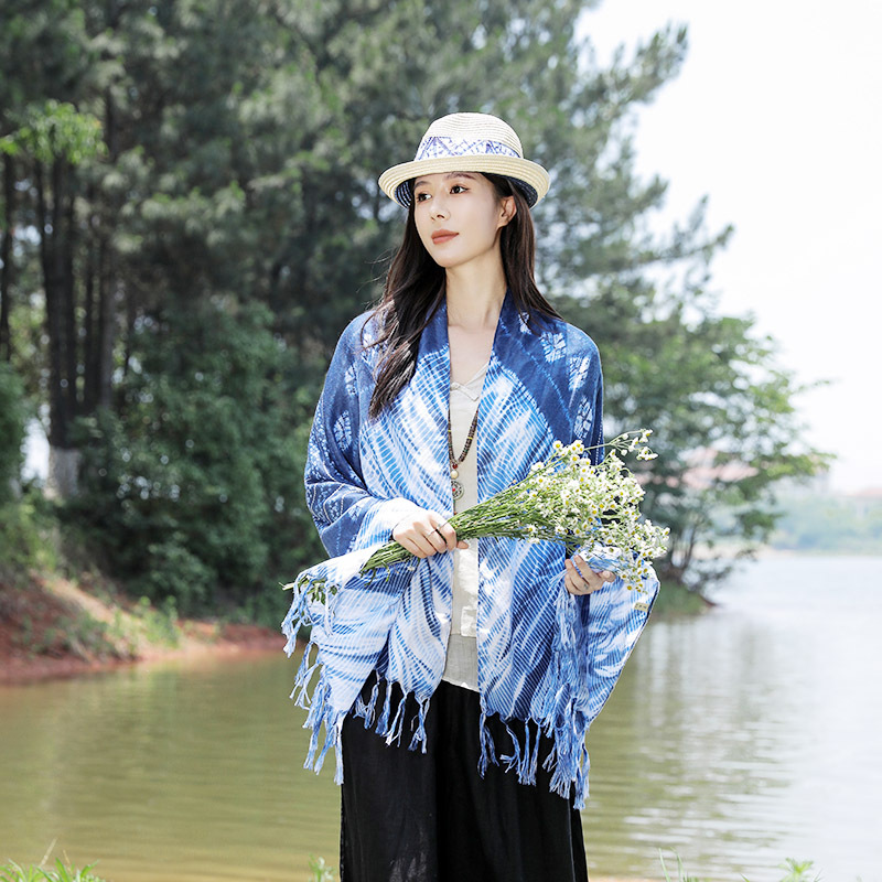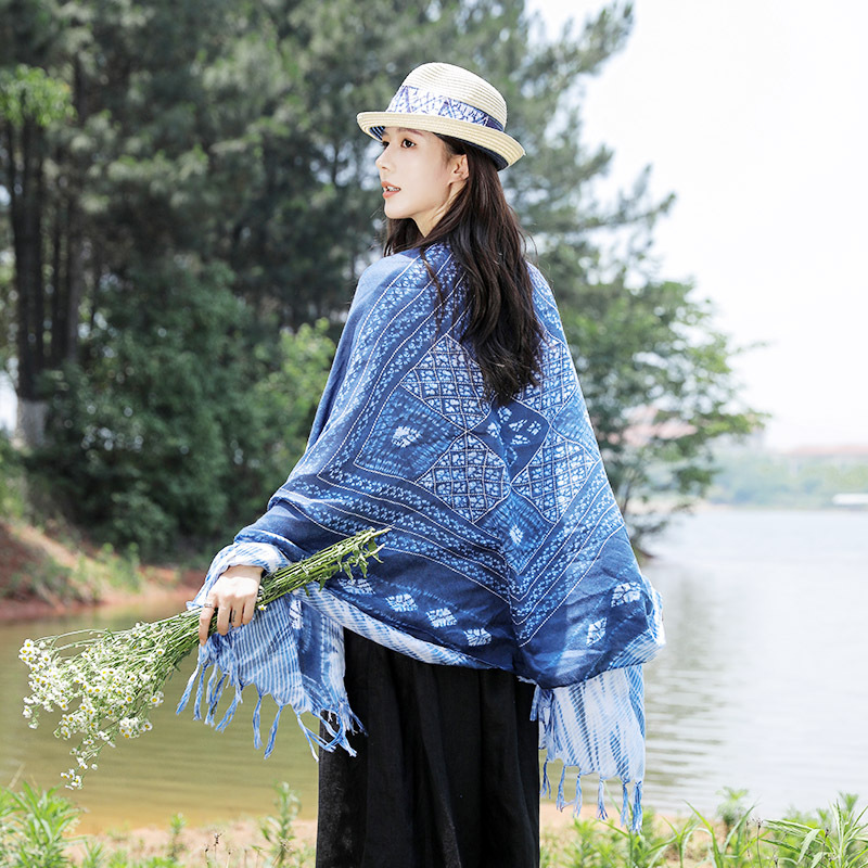 수제 타이 염색 예술적 에스닉 스타일 윈난 관광 인쇄 술 스카프 면 및 린넨 스카프 여성용 자외선 차단제 올 매치 숄