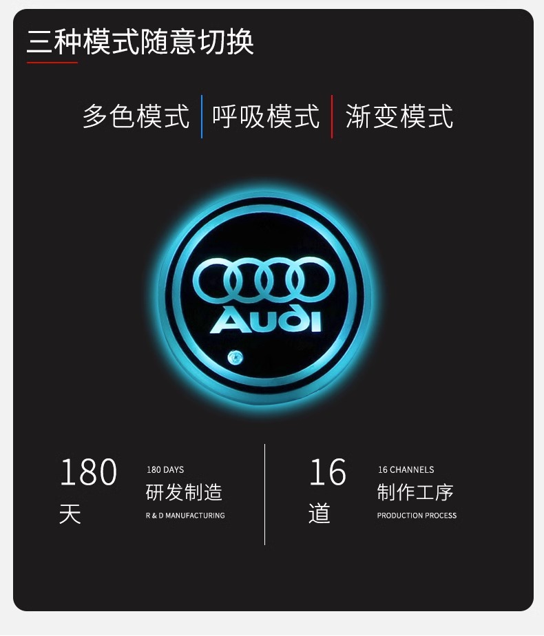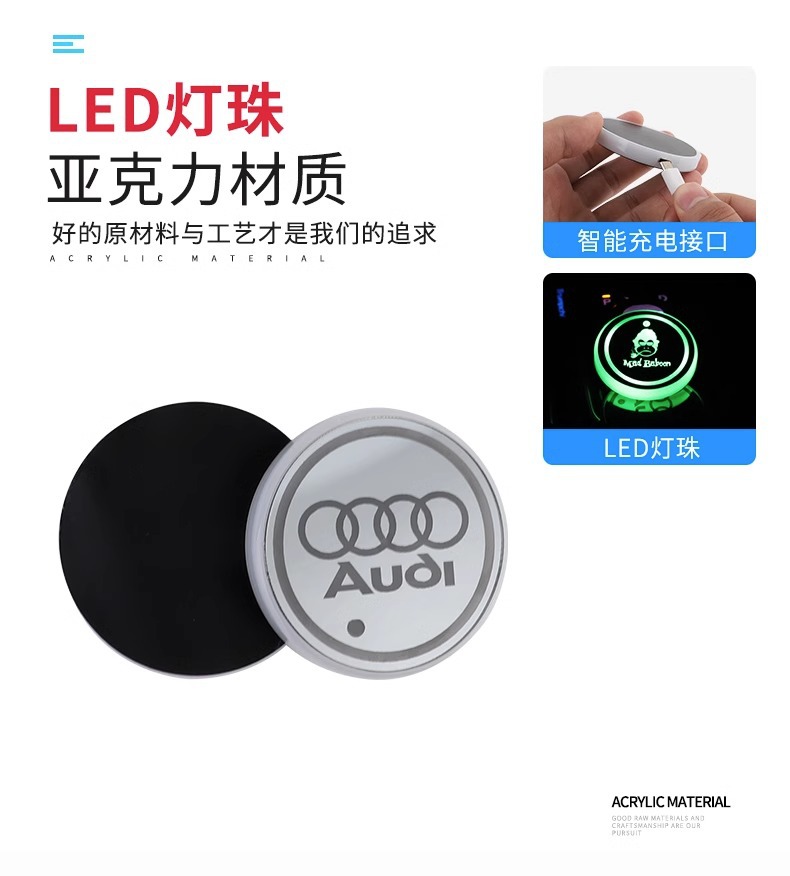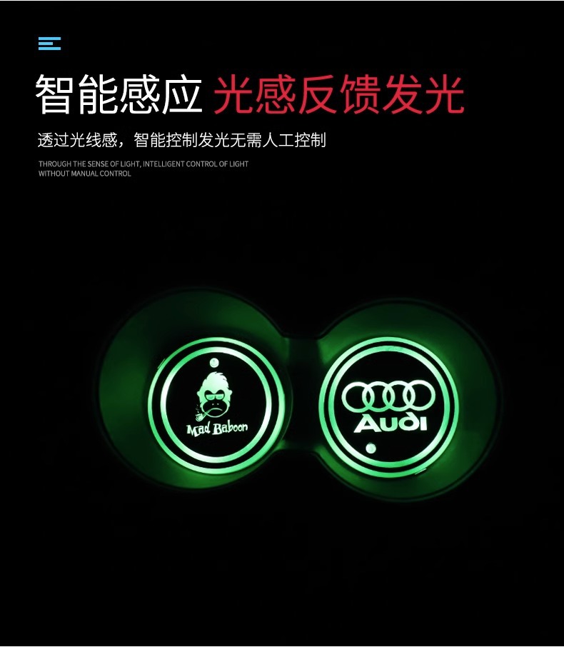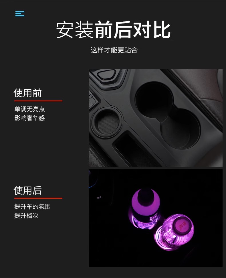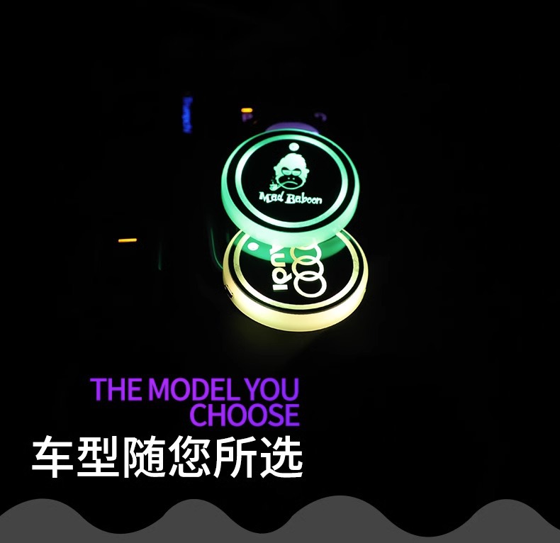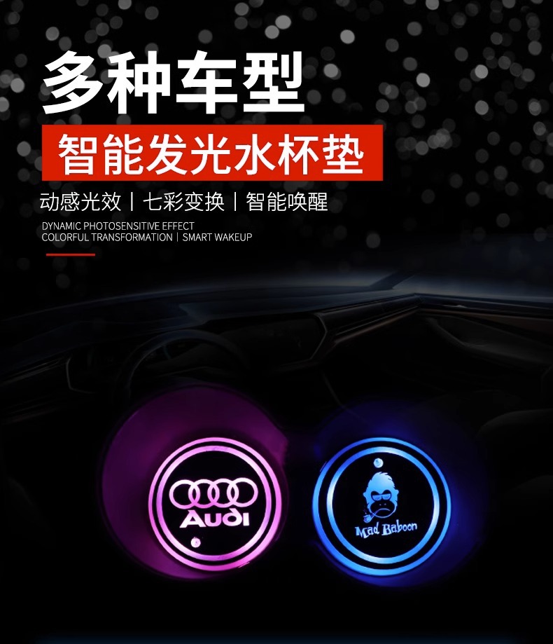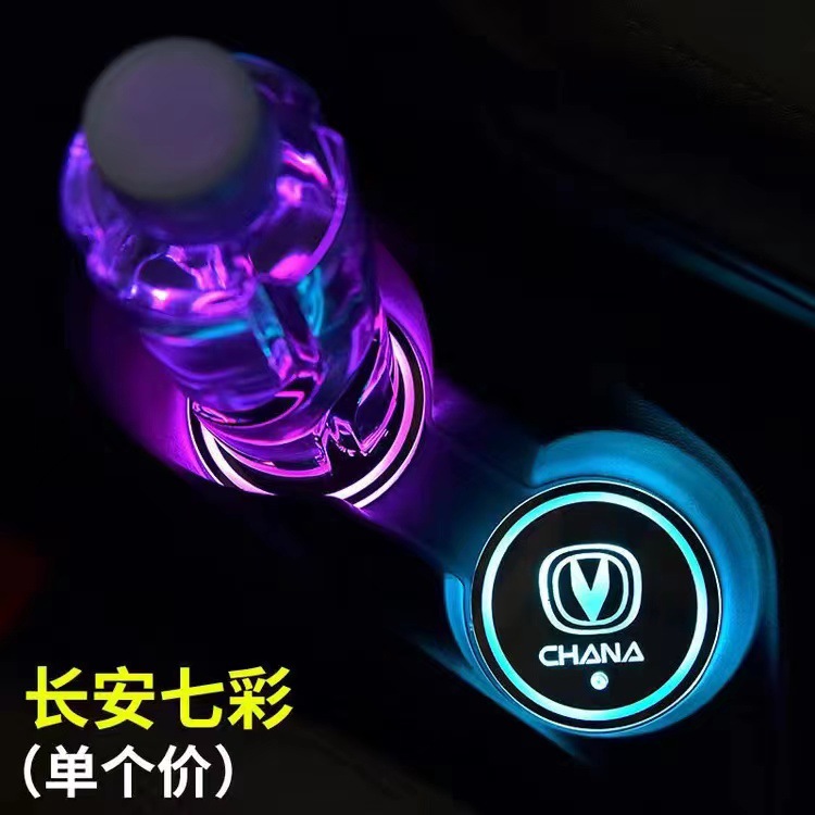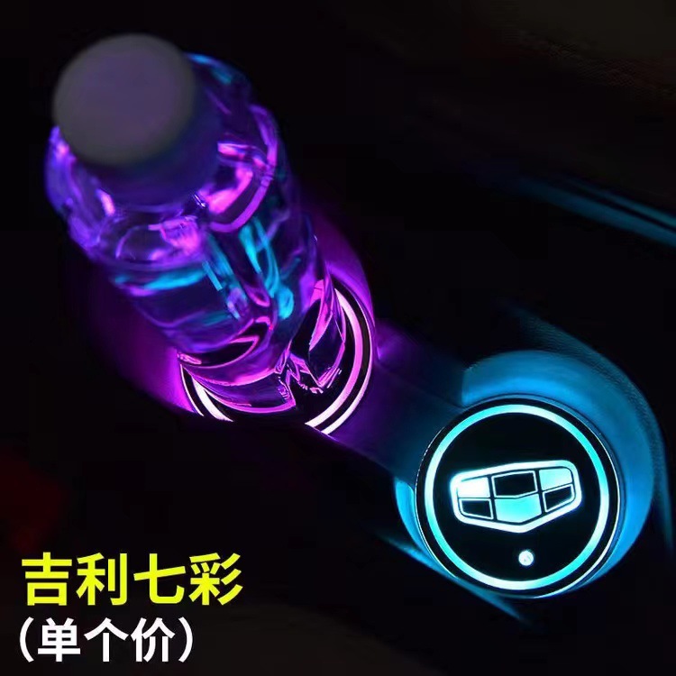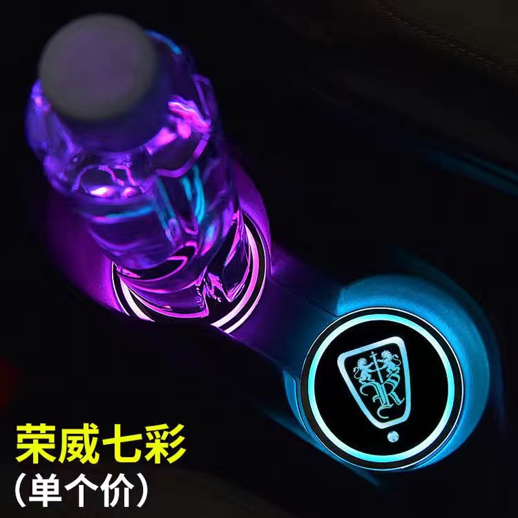 다채로운 자동차 LED 빛나는 컵 패드 패턴 로고 컵 슬롯 패드 자동차 분위기 빛 다채로운 내장 배터리