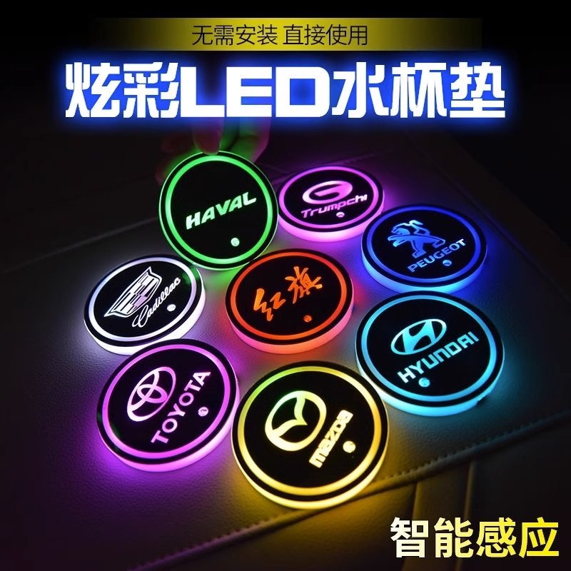 다채로운 자동차 LED 빛나는 컵 패드 패턴 로고 컵 슬롯 패드 자동차 분위기 빛 다채로운 내장 배터리스토어 가기