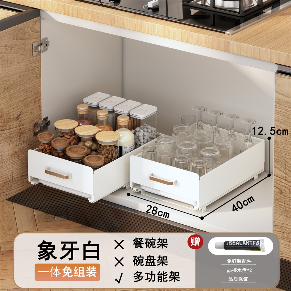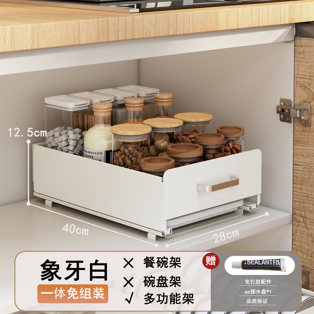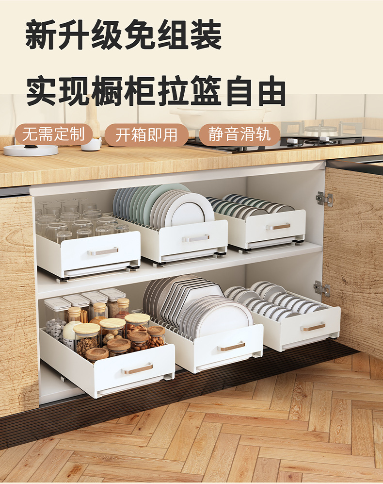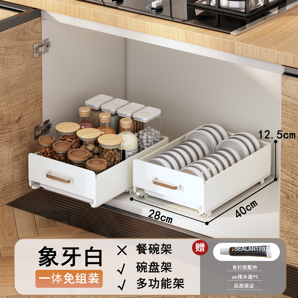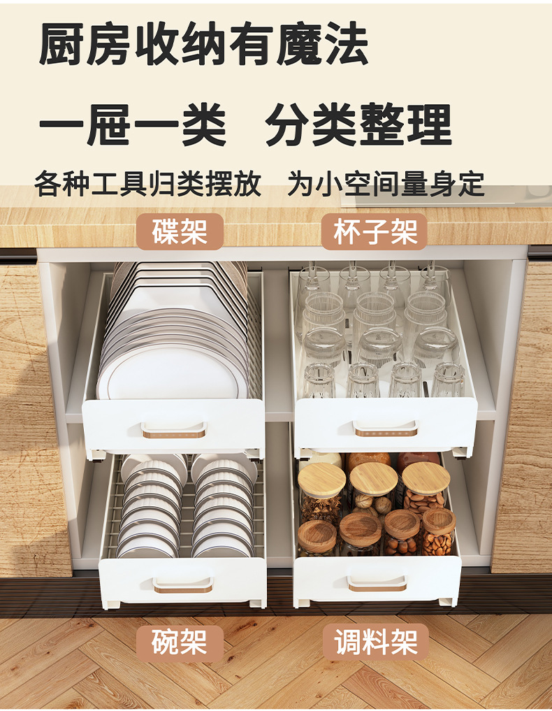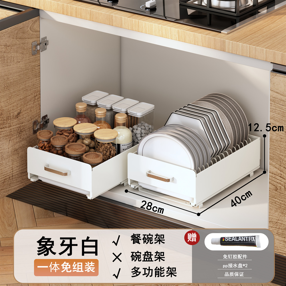 주방 접시 보관 랙 캐비닛 내장 풀 아웃 보관 선반 향신료 그릇 젓가락 다기능 풀 아웃 바구니 접시 랙