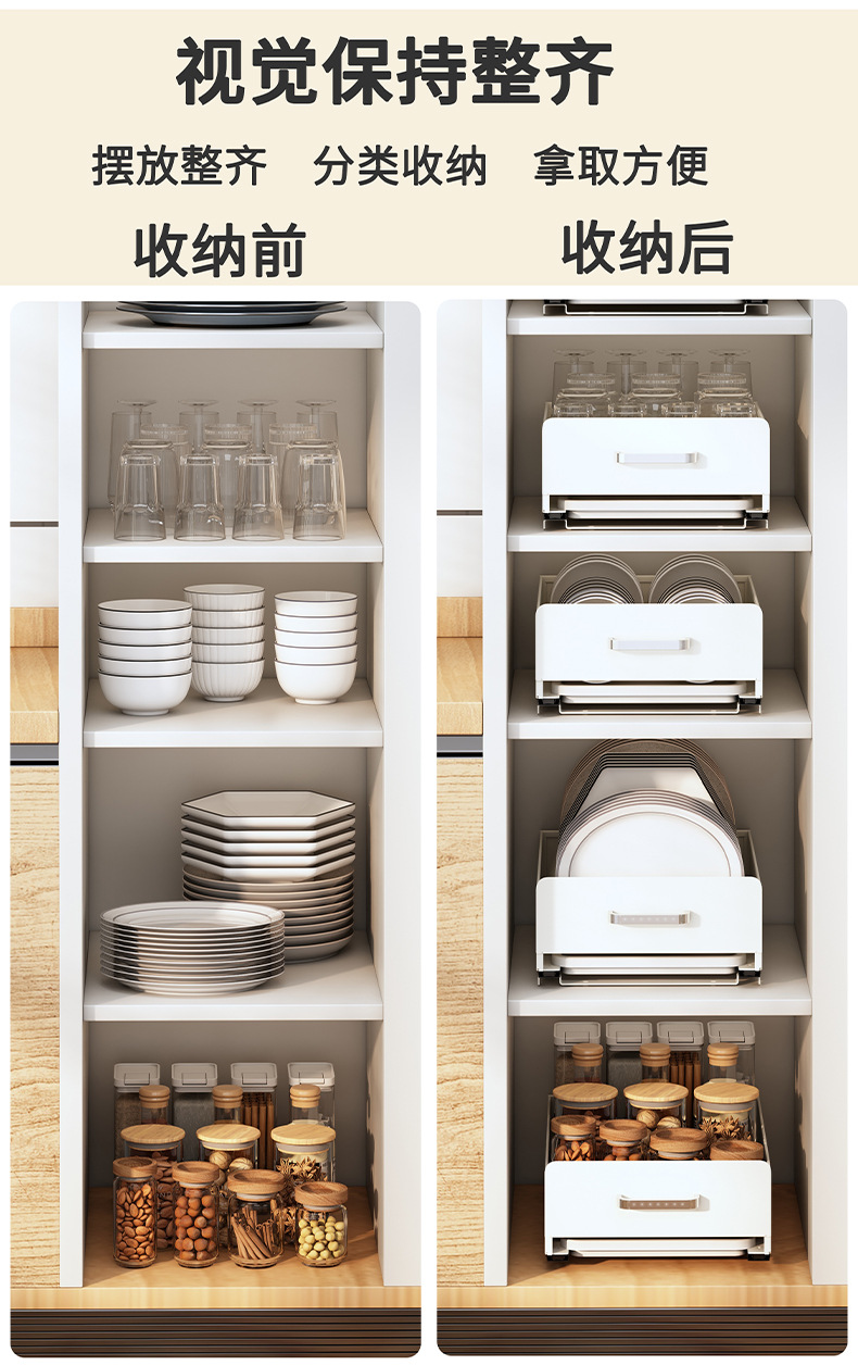 주방 접시 보관 랙 캐비닛 내장 풀 아웃 보관 선반 향신료 그릇 젓가락 다기능 풀 아웃 바구니 접시 랙스토어 가기