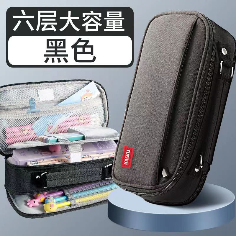 6 겹 대용량 필통 도매 캔버스 문구 상자 남자 고등학생 다층 두꺼운 in 바람 먼지 방지