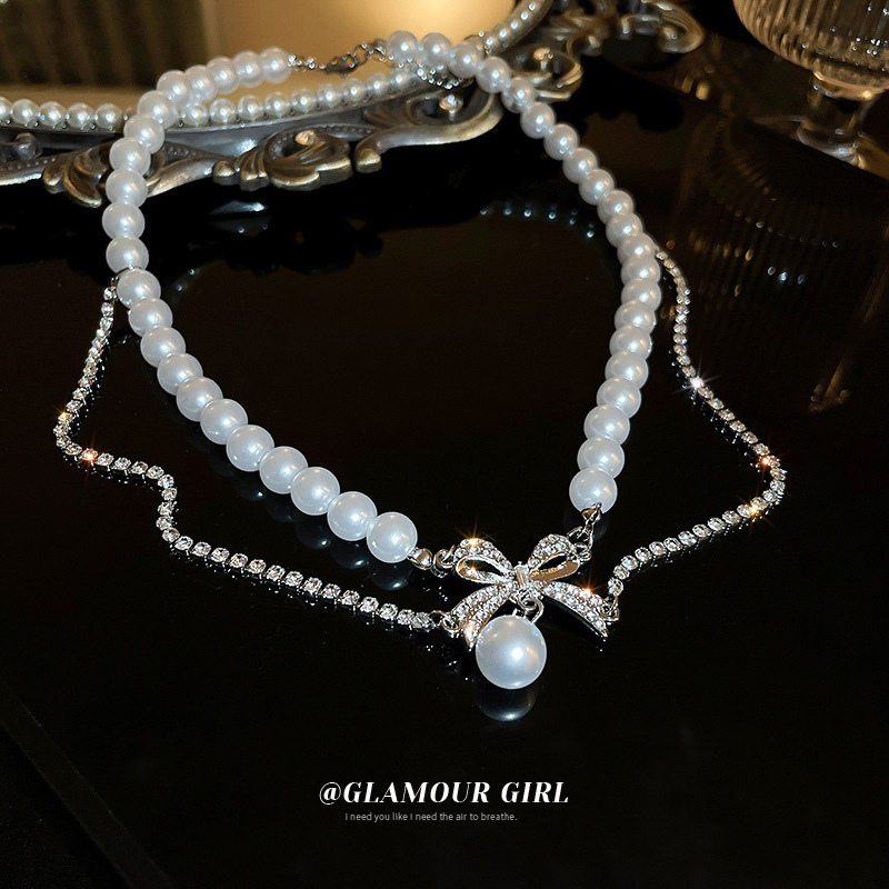 탈출 공주 진주 목걸이 고급 활 쇄골 체인 라이트 럭셔리 틈새 누적 목걸이 장식 여성용 쇄골