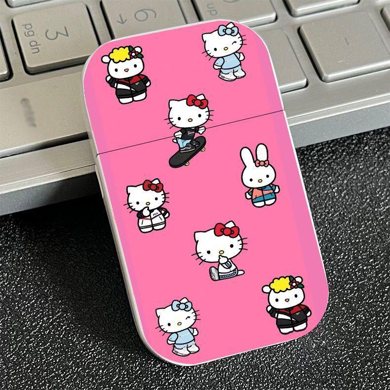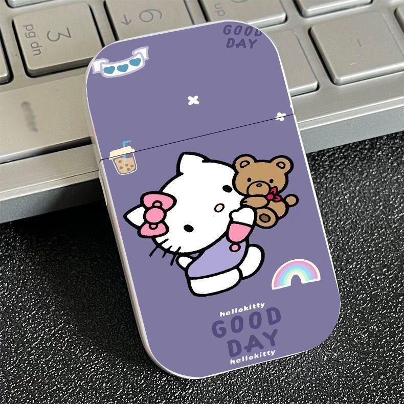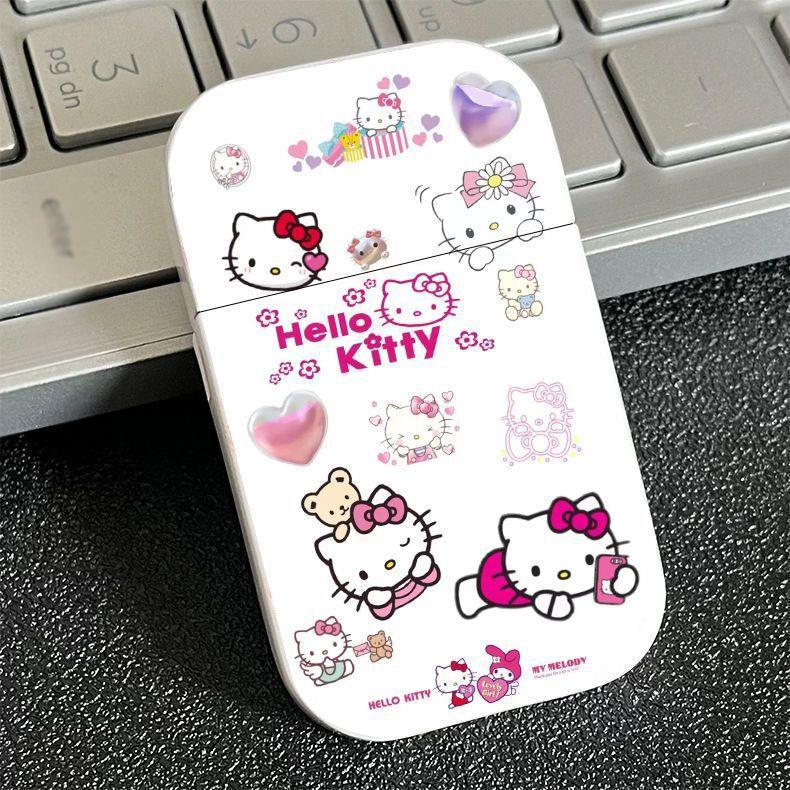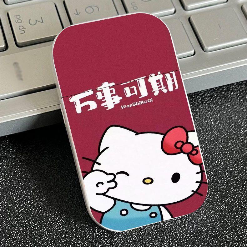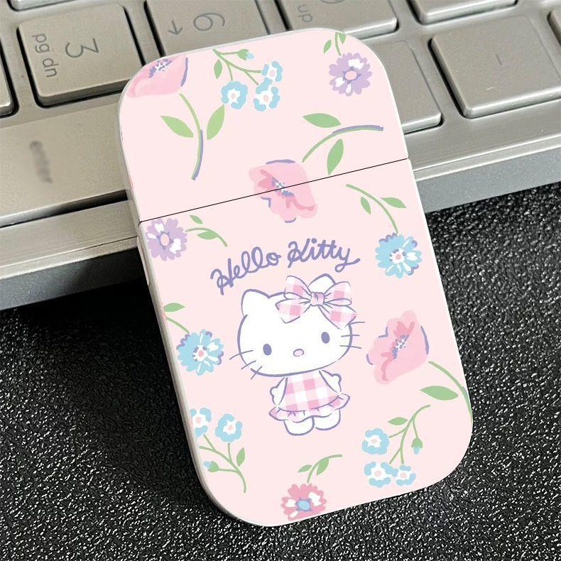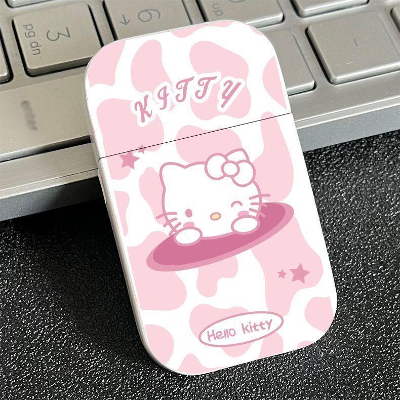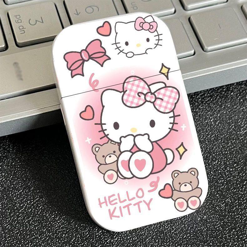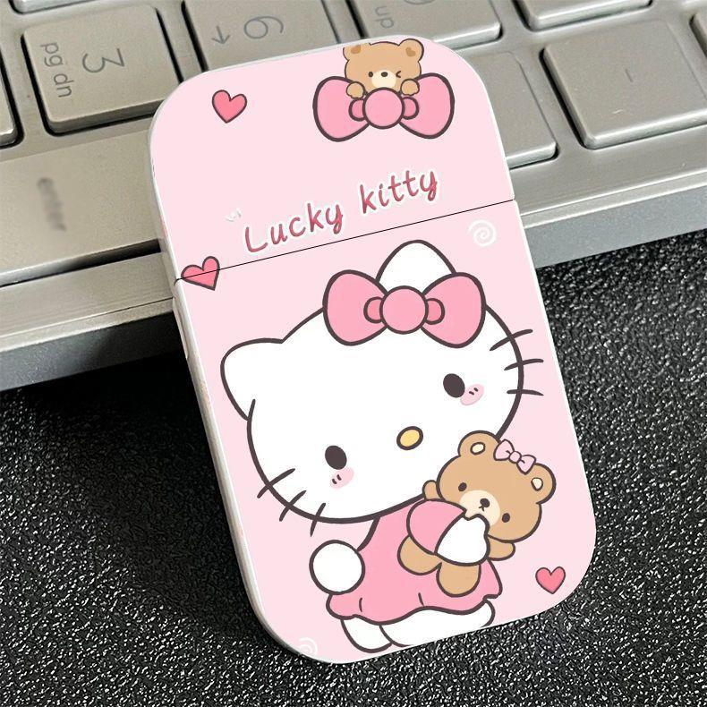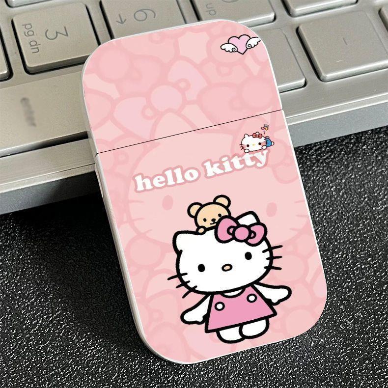 헬로 키티 헬로 키티 방풍 라이터 귀여운 만화 핑크 불꽃 인터넷 연예인 보내기 여자 남자 친구스토어 가기