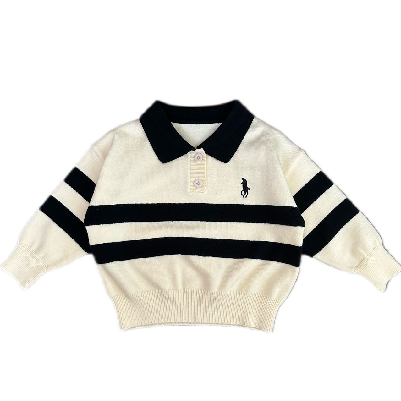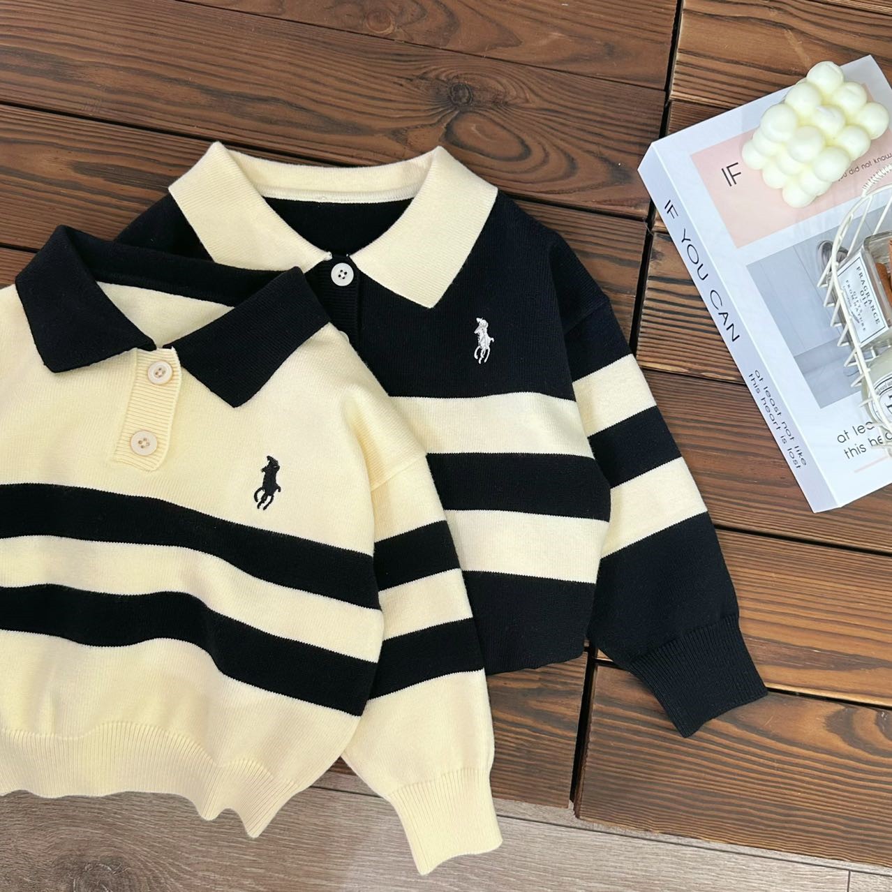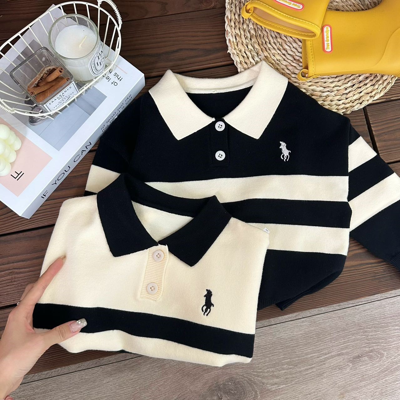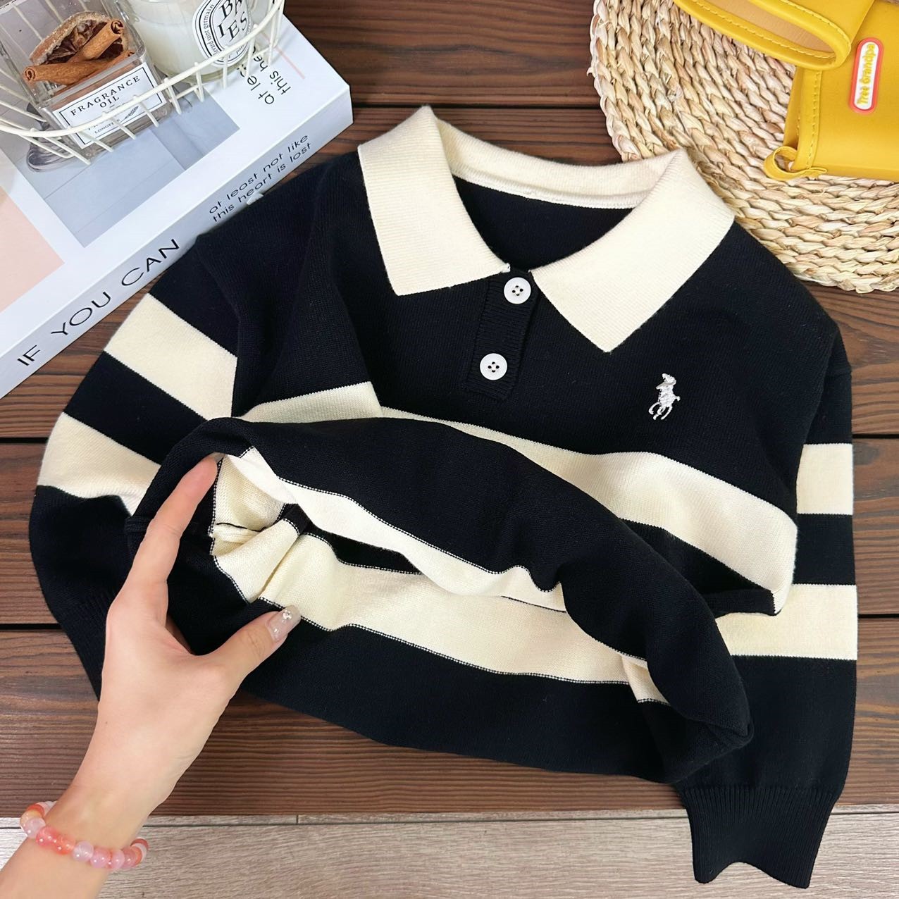 2023 가을과 겨울 새로운 어린이 옷깃 스트라이프 스웨터 소년과 소녀 캐주얼 스웨터 따뜻한 POL0 셔츠스토어 가기