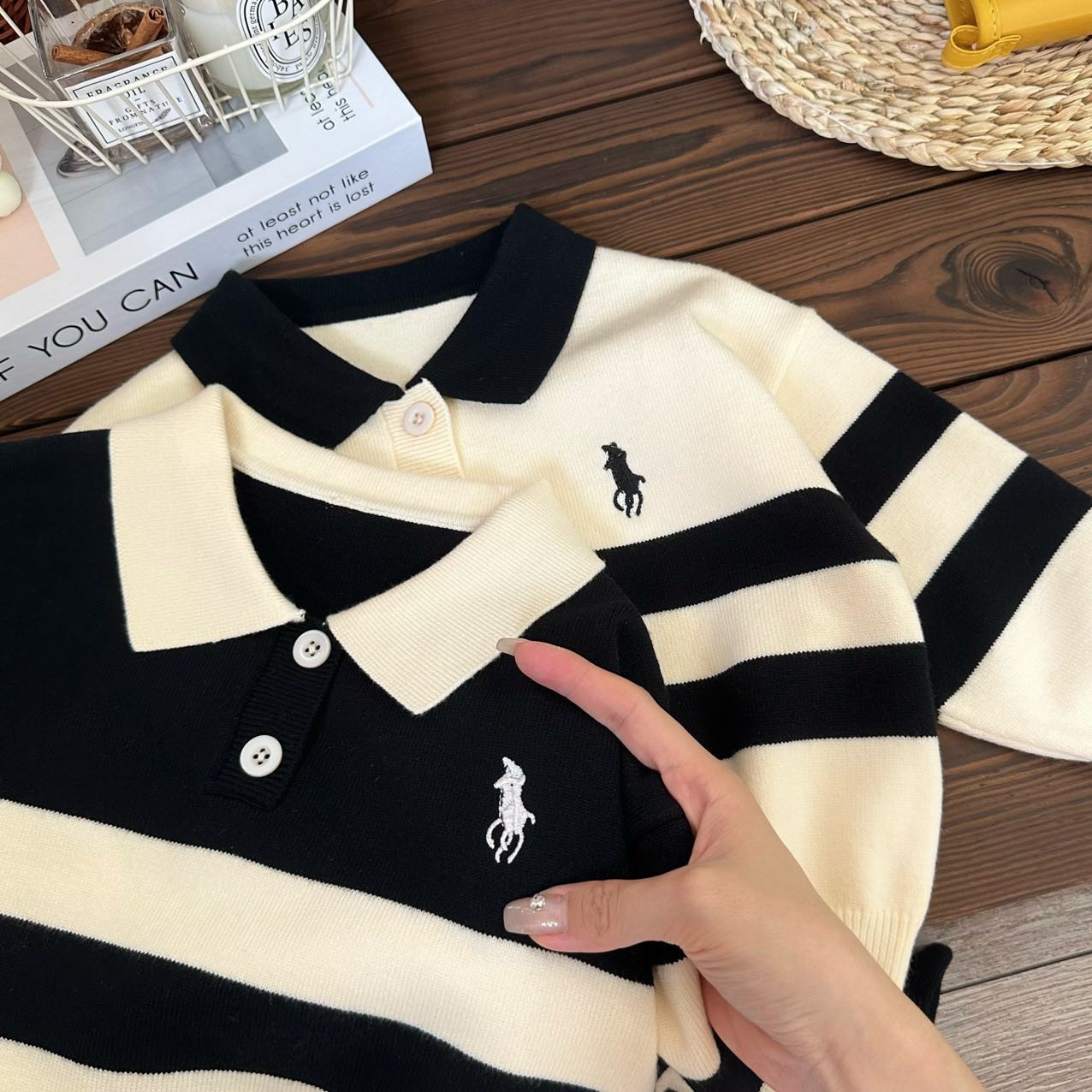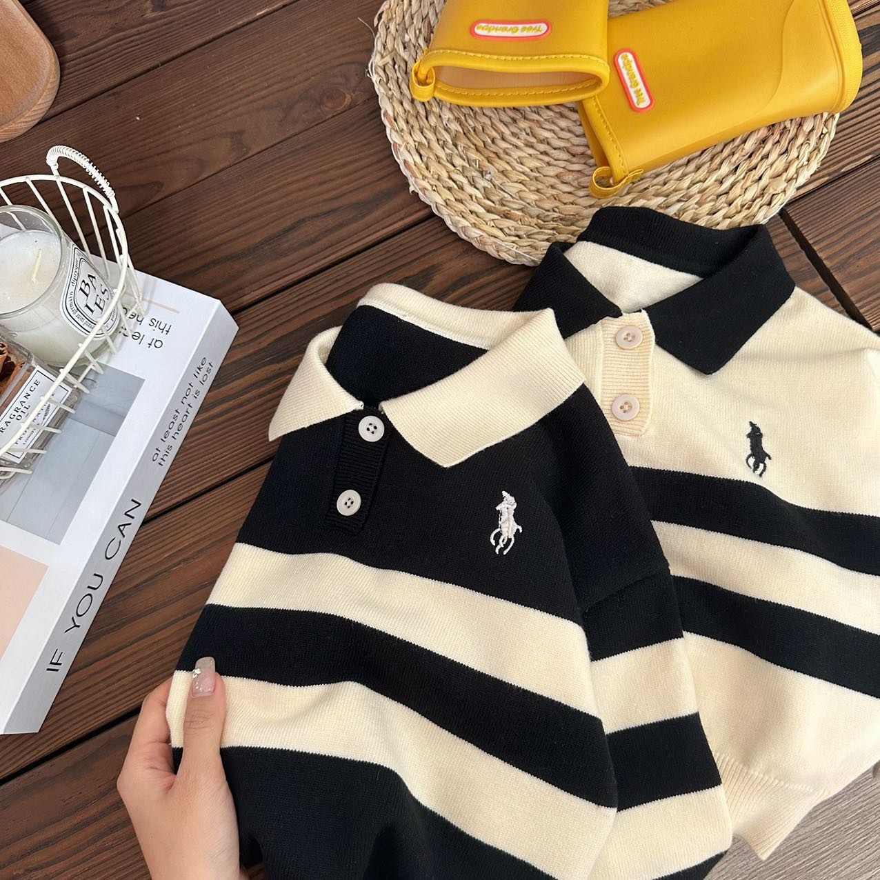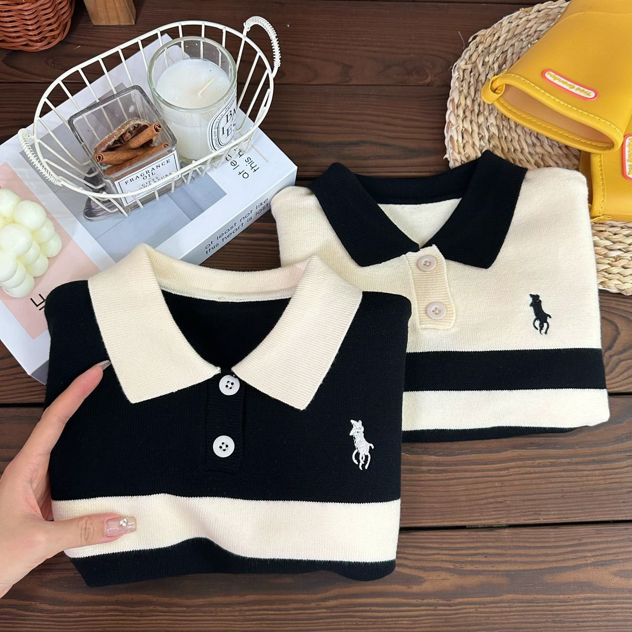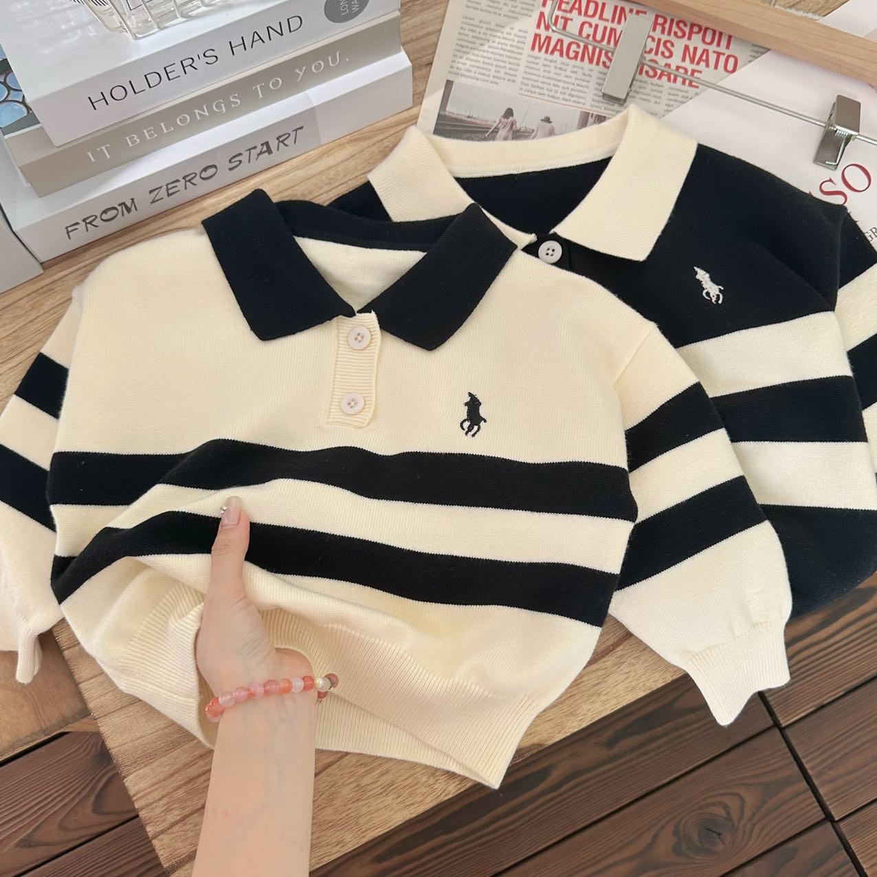 2023 가을과 겨울 새로운 어린이 옷깃 스트라이프 스웨터 소년과 소녀 캐주얼 스웨터 따뜻한 POL0 셔츠스토어 가기