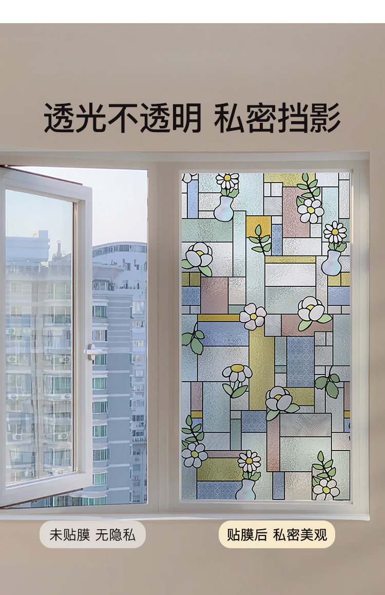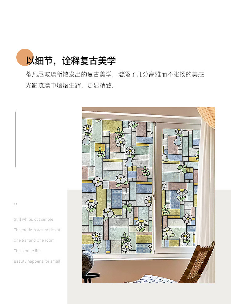 티파니 레트로 아트 유리 스티커 욕실 안티 라이트 투과 불투명 안티 엿보기 창 필름 장식