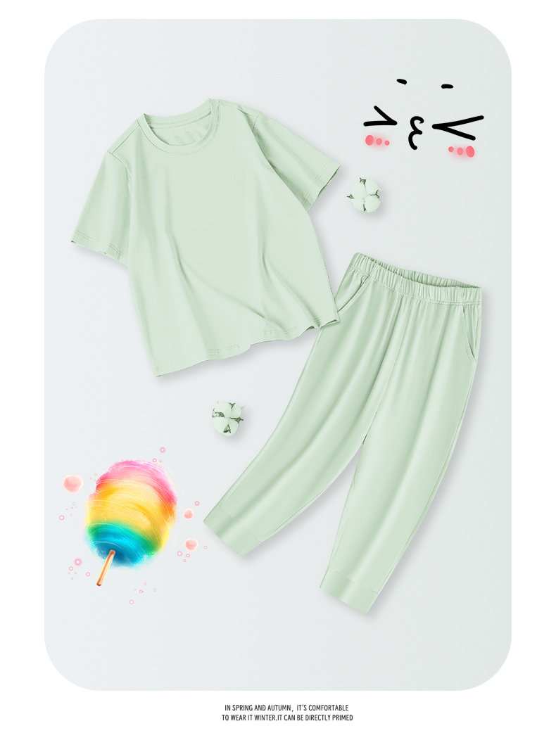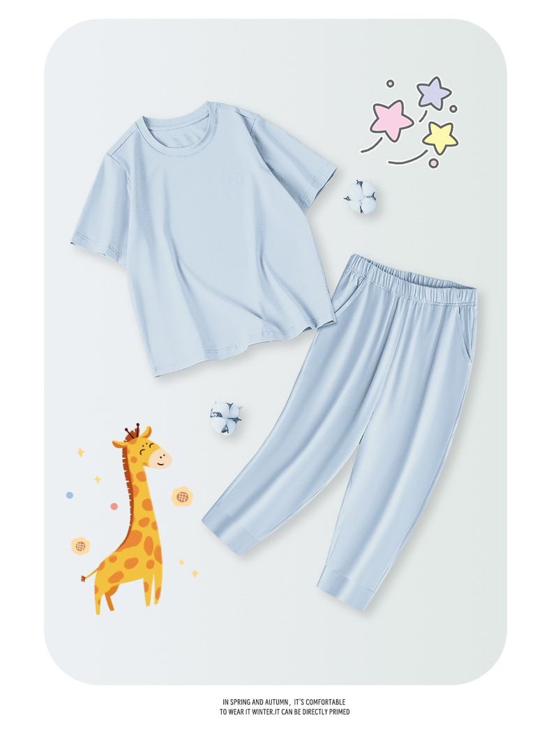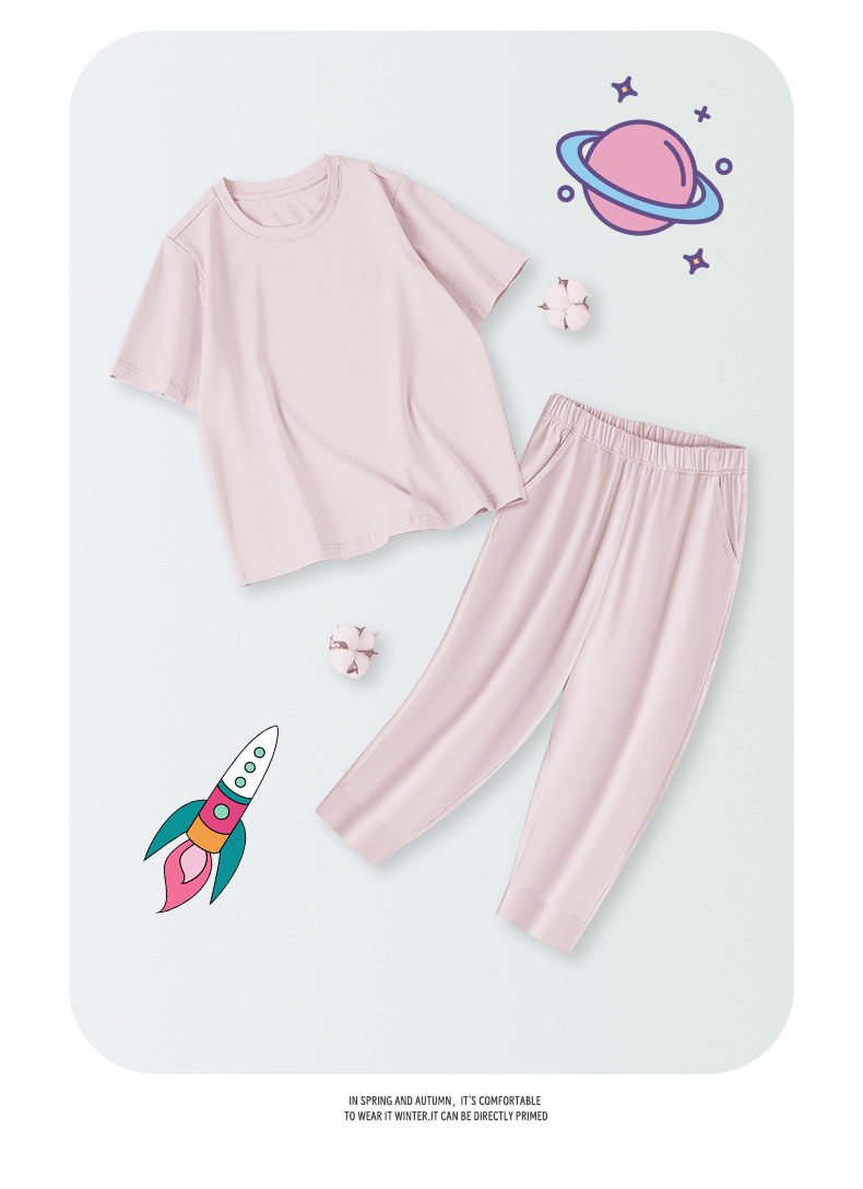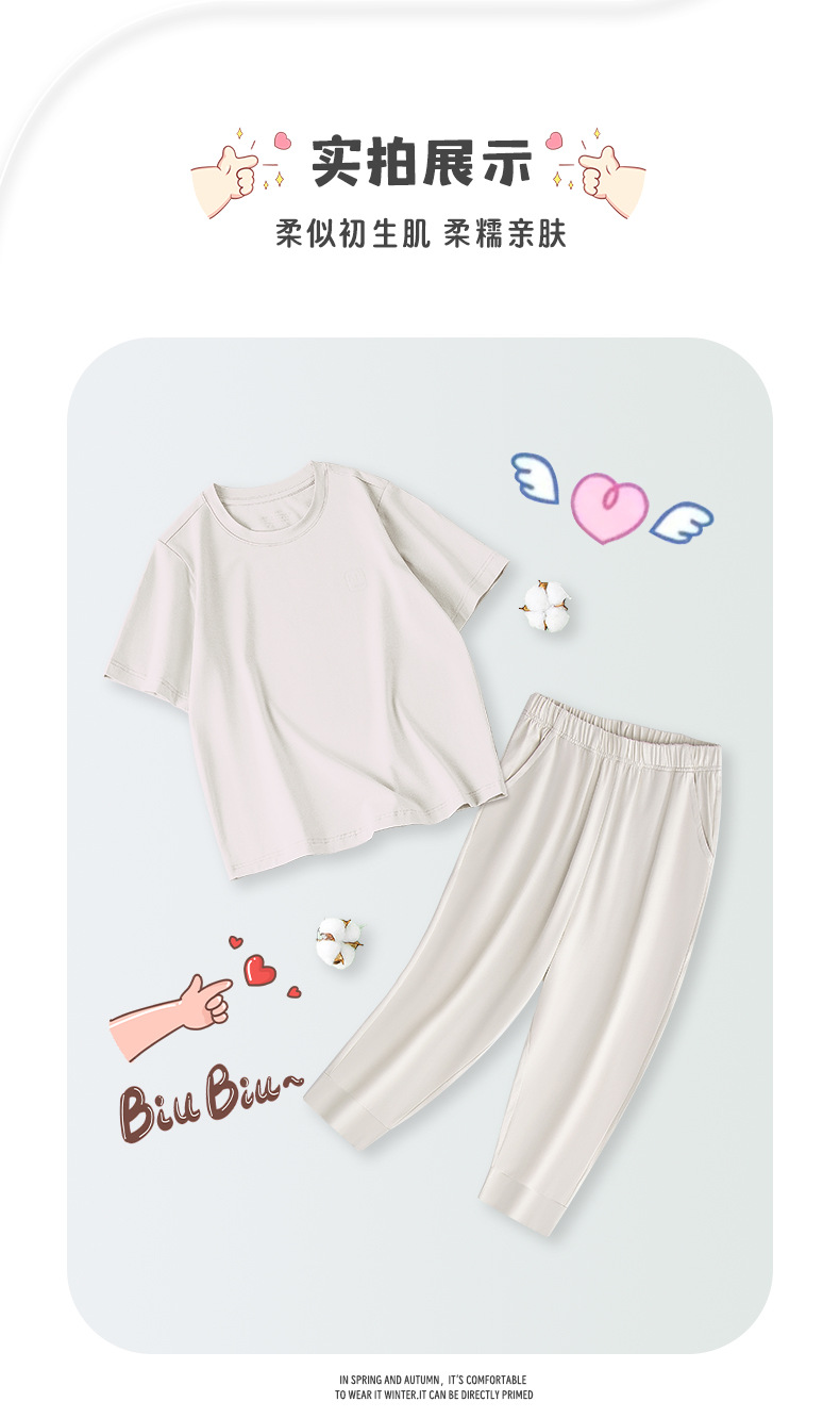 모달 코튼 혼방 봄 여름 남아 여아 캐주얼 잠옷 세트 단색 얇은 스타일 외출복으로도 착용 가능