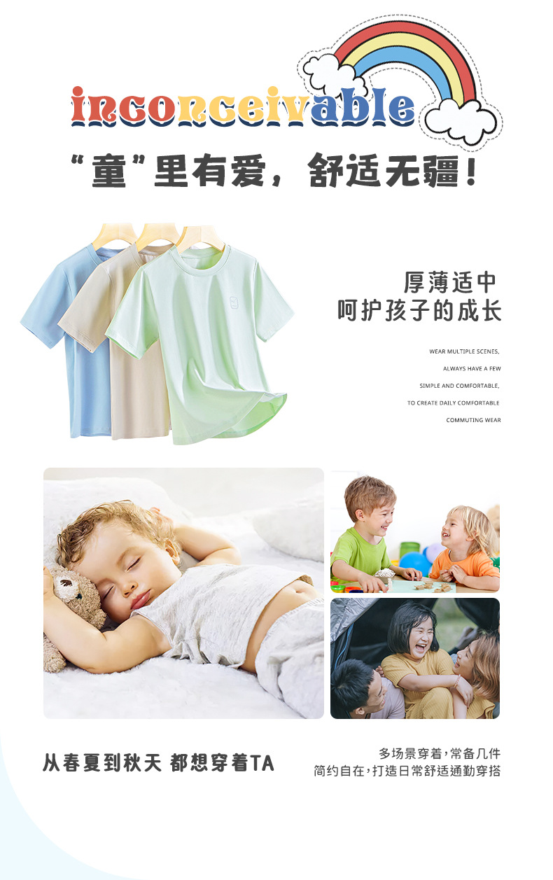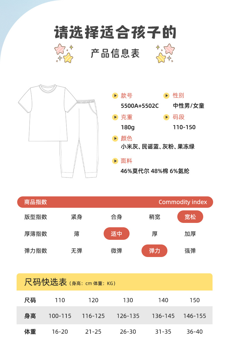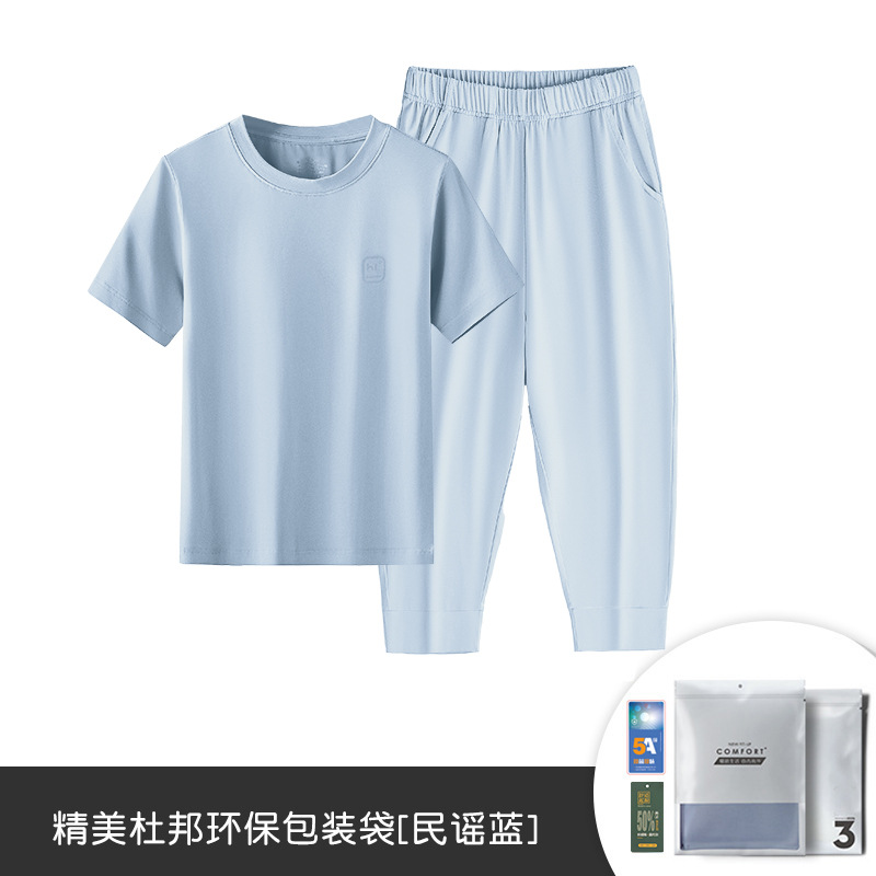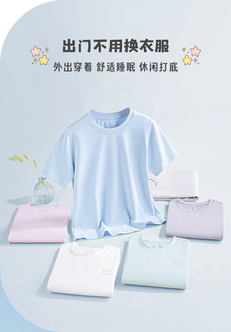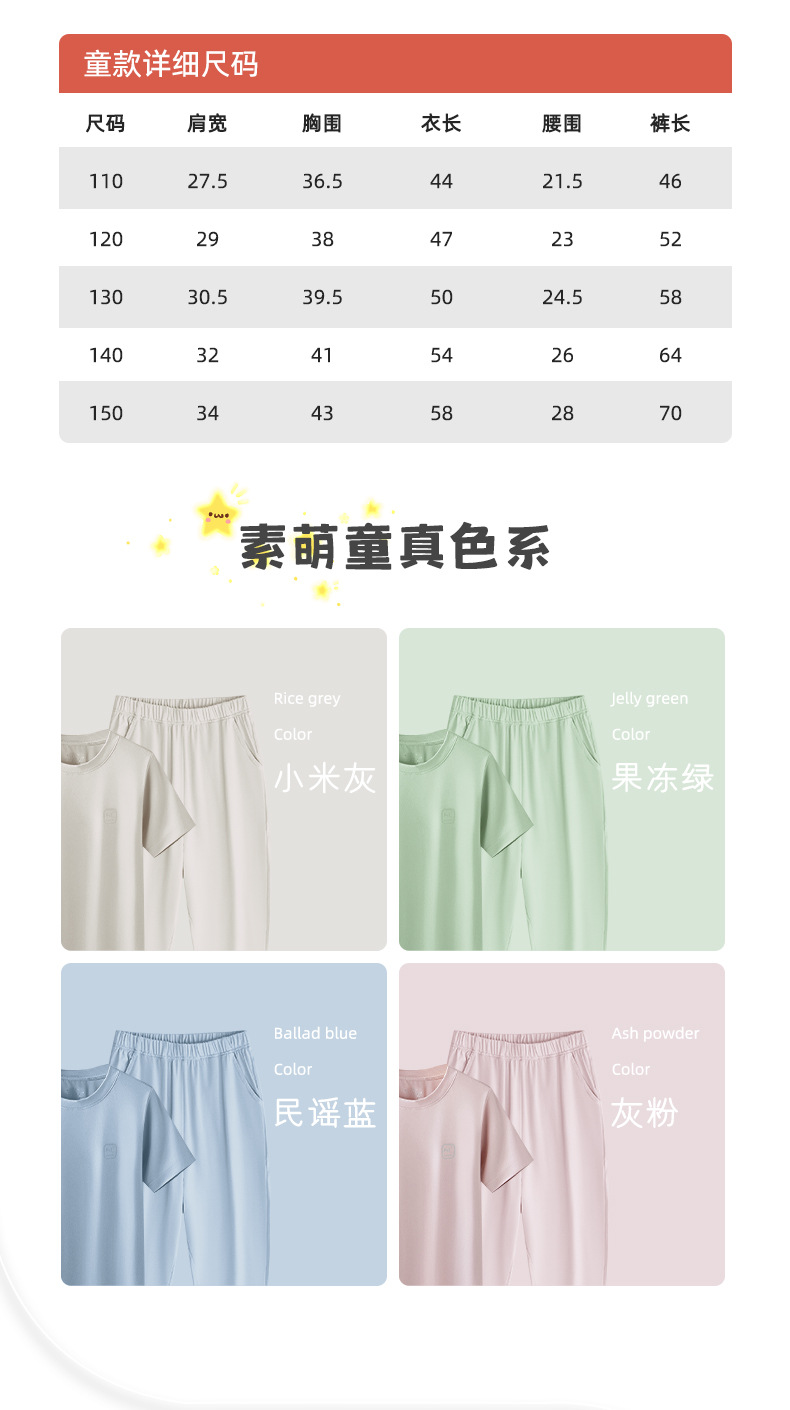 모달 코튼 혼방 봄 여름 남아 여아 캐주얼 잠옷 세트 단색 얇은 스타일 외출복으로도 착용 가능