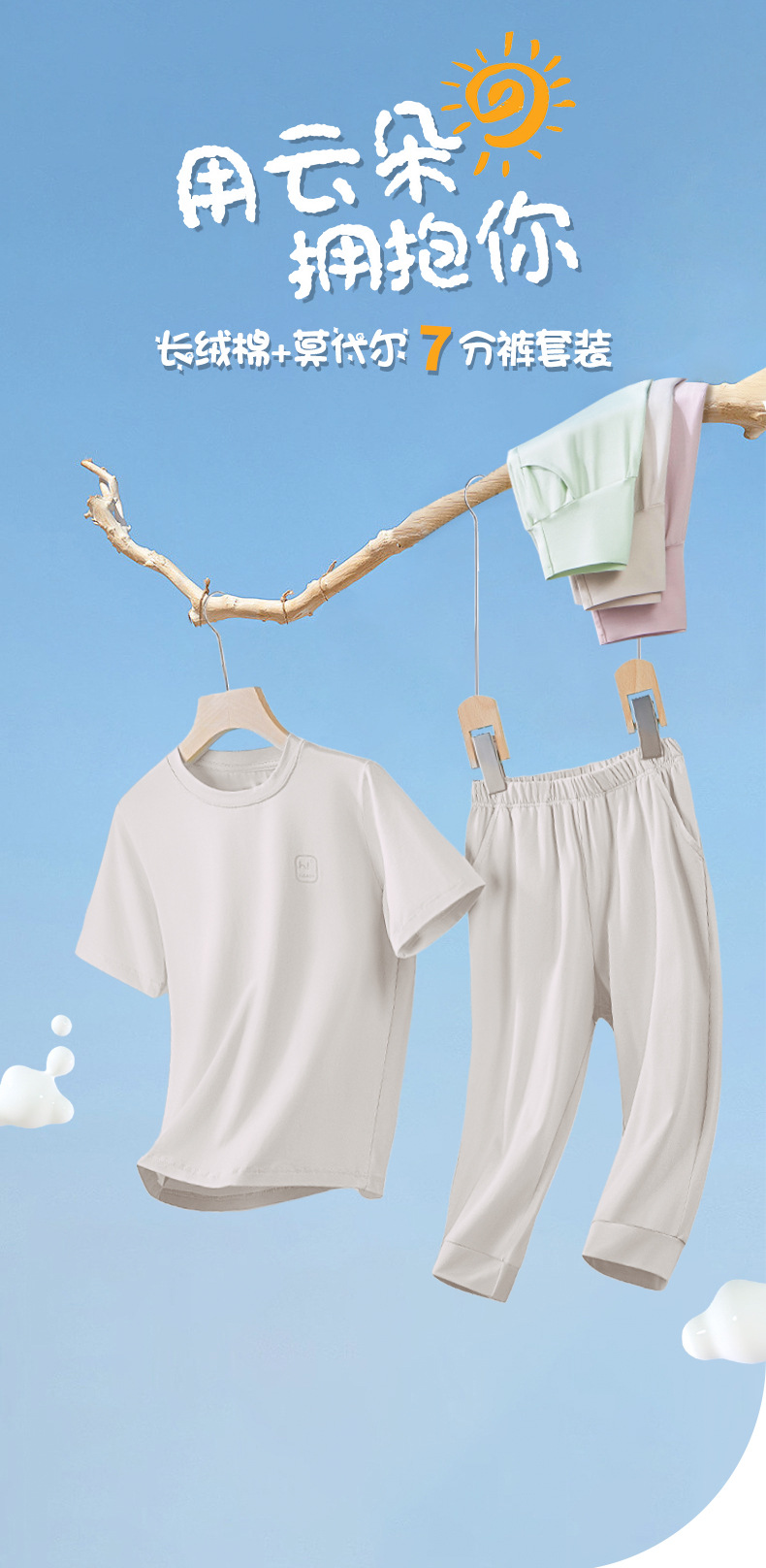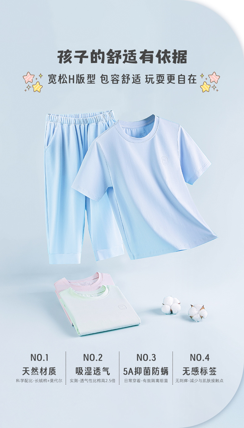 모달 코튼 혼방 봄 여름 남아 여아 캐주얼 잠옷 세트 단색 얇은 스타일 외출복으로도 착용 가능스토어 가기