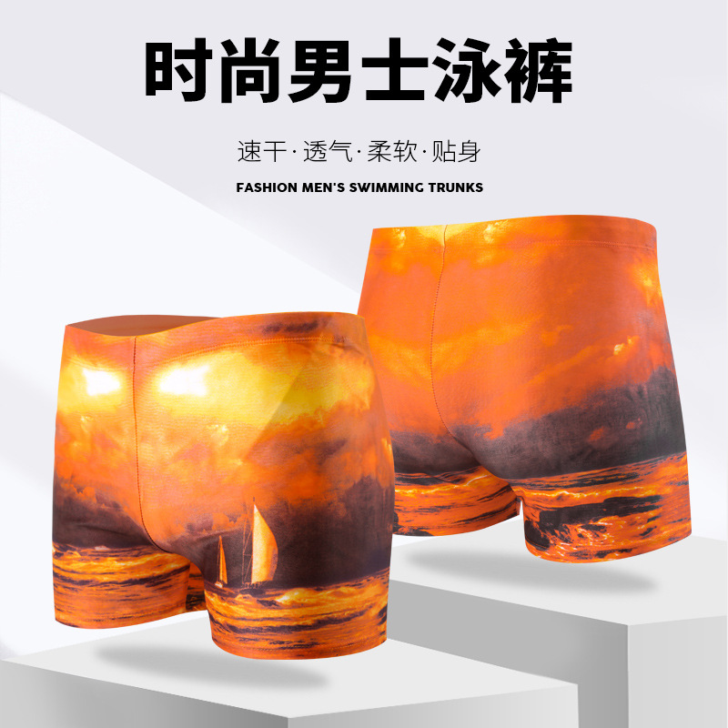 남성용 성인 수영 트렁크 3D 디지털 인쇄 복서 수영 트렁크 스포츠 속건성 인쇄 중간 허리 소년 전체 안감 수영 트렁크
