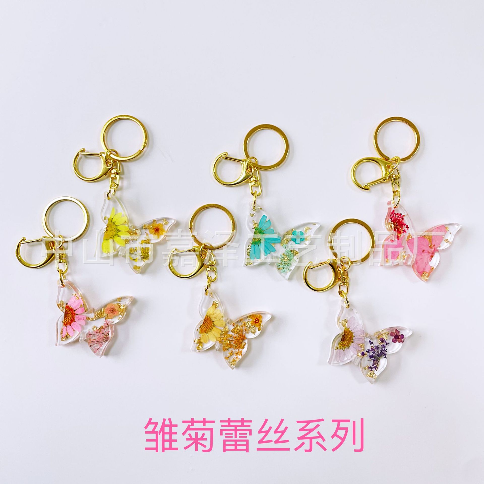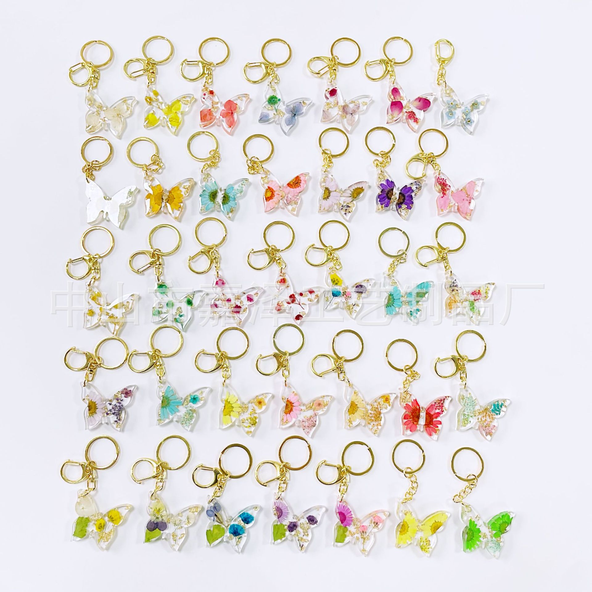 말린 꽃 열쇠 고리 양각 나비 인기있는 크리스탈 드롭 접착제 보석 데이지 가방 여성 펜던트 도매