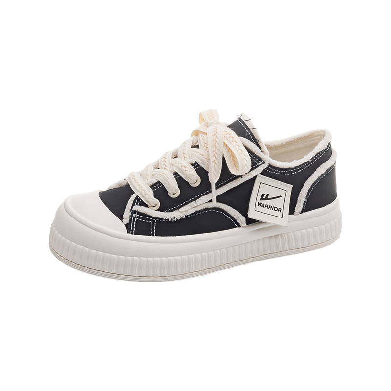 후아리 웨이브 엣지 스니커즈, 독창적인 봄/가을 스타일, 두꺼운 밑창, 헝겊 신발, 홍콩 스타일, 실용적인 끈 묶는 캐주얼 여성화, 두꺼운 밑창 캐주얼 신발