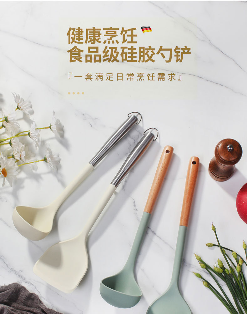【品名】:卡扣榉木/大管柄硅胶铲勺