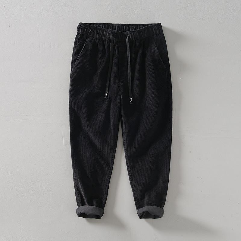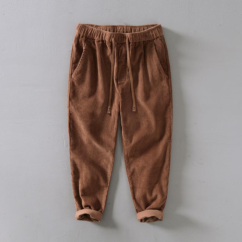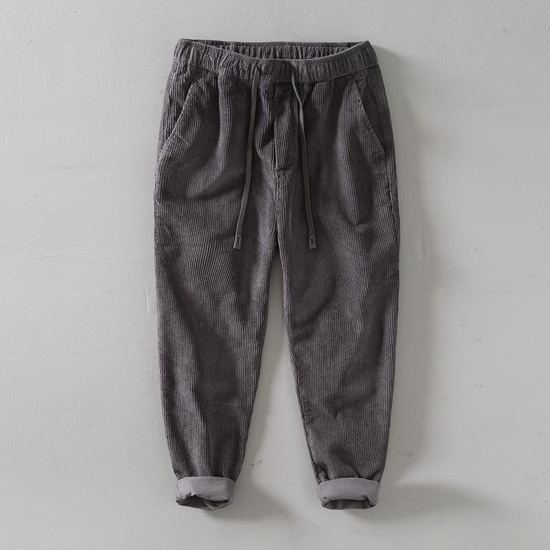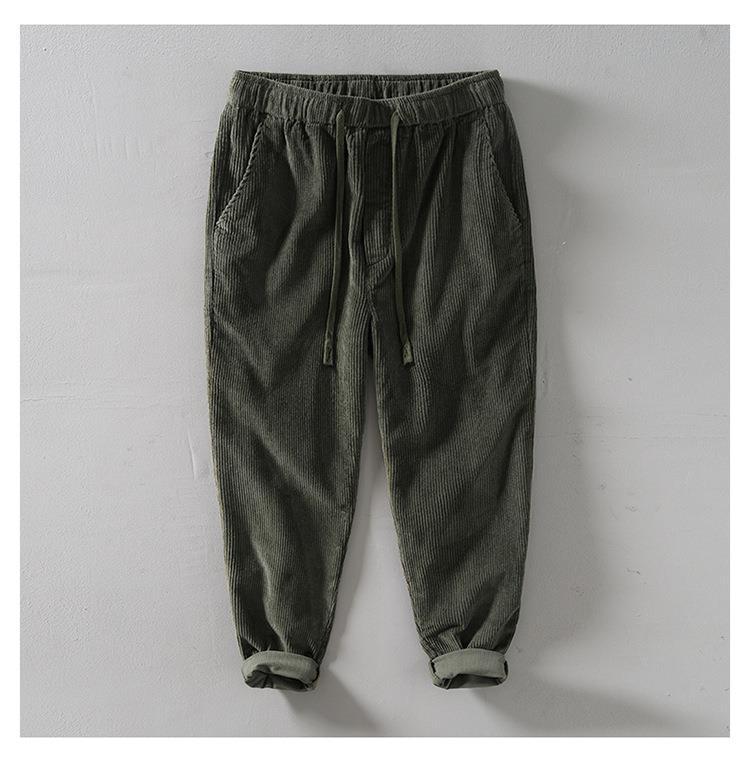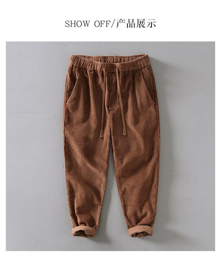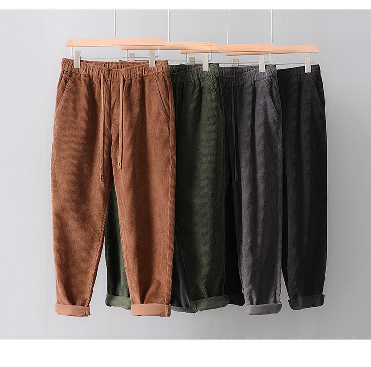 L8235 일본 탄성 허리 레트로 코듀로이 따뜻한 스트레이트 캐주얼 바지 남성 바지