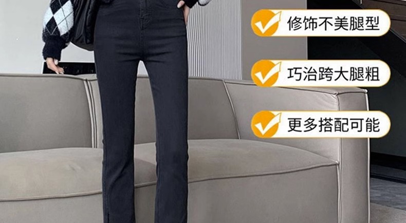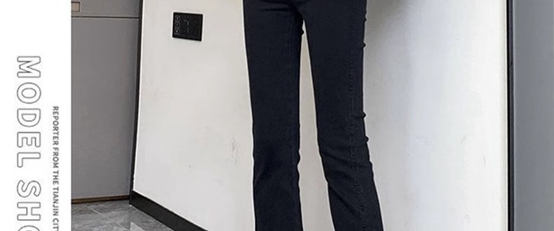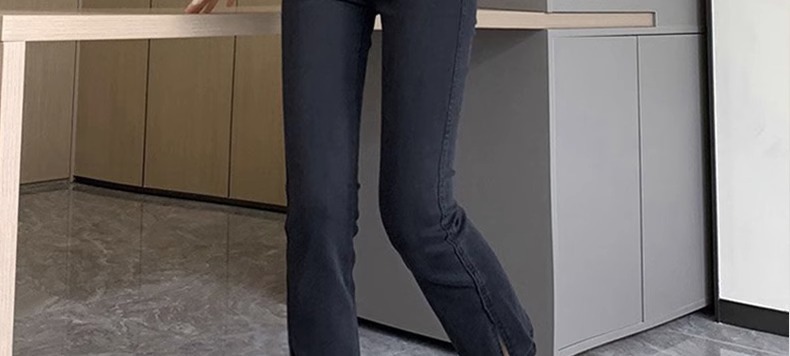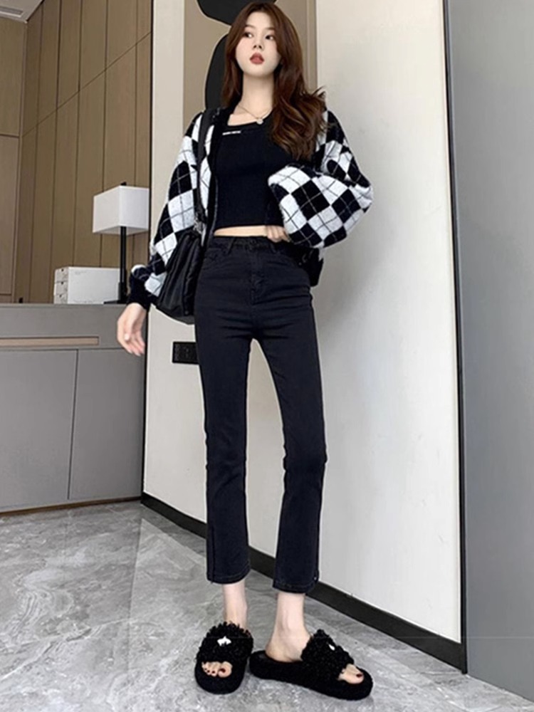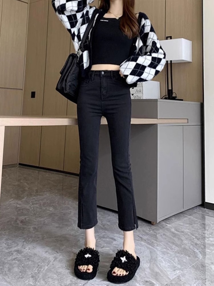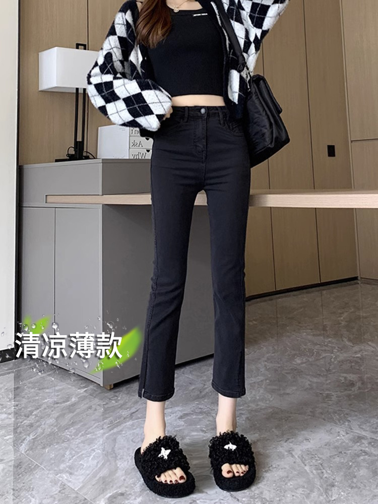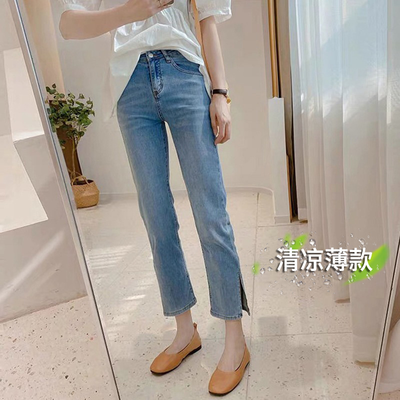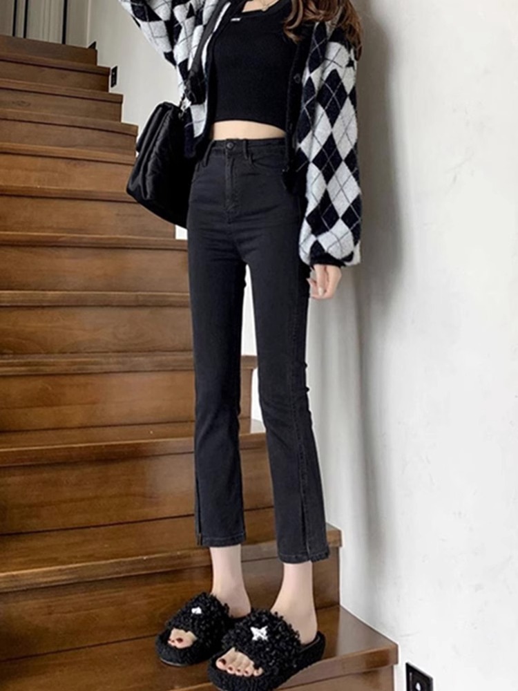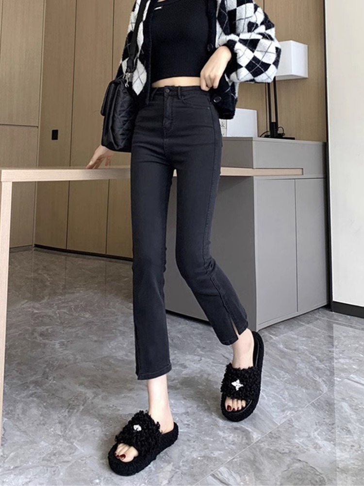 2023 여름 얇은 블랙 스플릿 스트레이트 청바지 여성용 하이 웨이스트 슬리밍 쁘띠 올매치 담배 발목 길이 바지스토어 가기