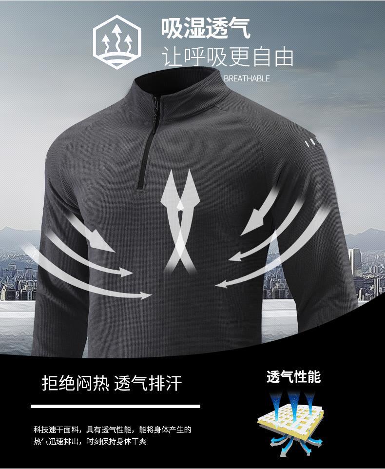 크로스 보더 봄과 가을 하프 지퍼 남성용 긴팔 티셔츠 남성용 통기성 탄성 야외 스포츠 캐주얼 탑