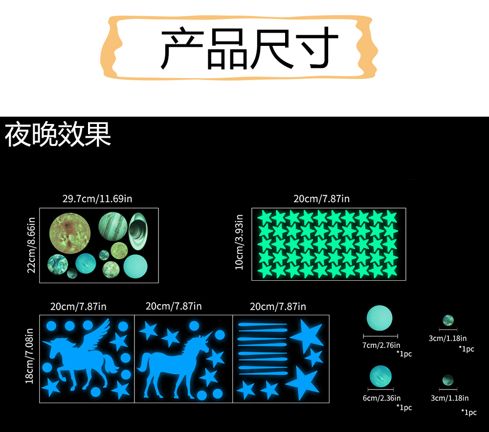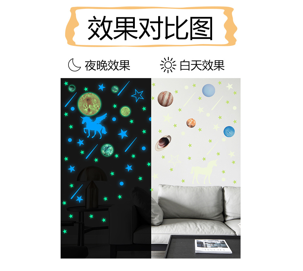 Y003 아마존 크리에이티브 발광 스티커 행성 하늘 말 별 빛나는 벽 스티커 장식 형광 레이아웃 스티커스토어 가기