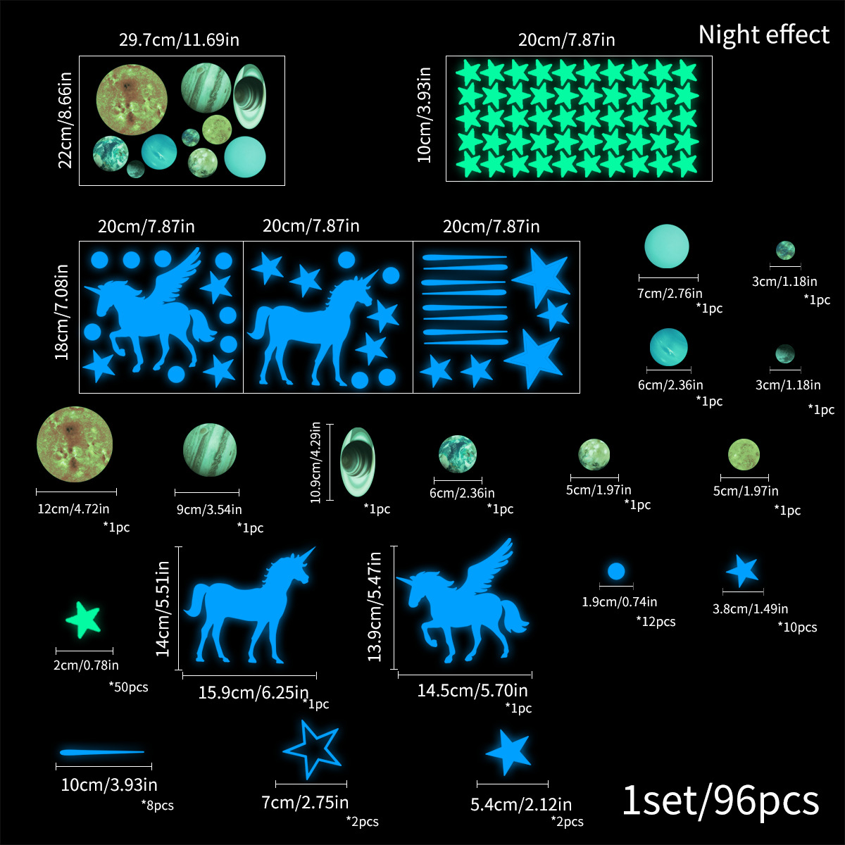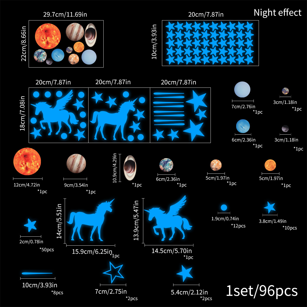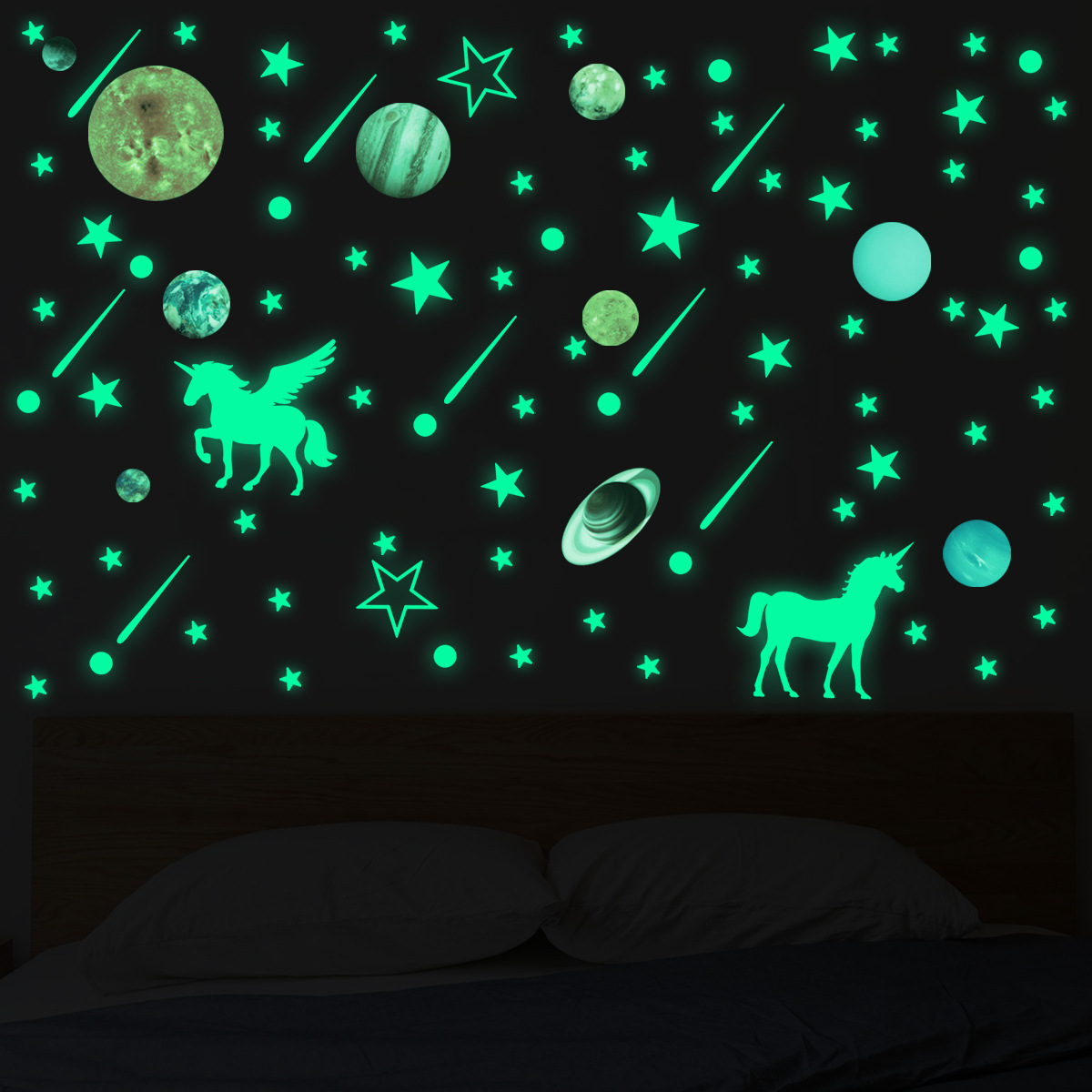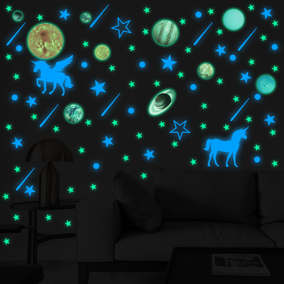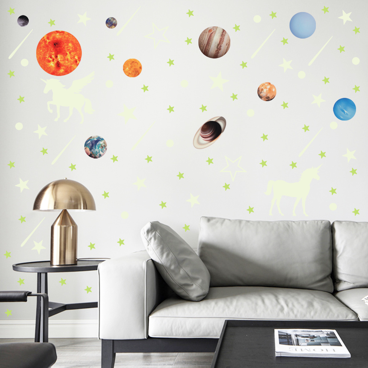 Y003 아마존 크리에이티브 발광 스티커 행성 하늘 말 별 빛나는 벽 스티커 장식 형광 레이아웃 스티커