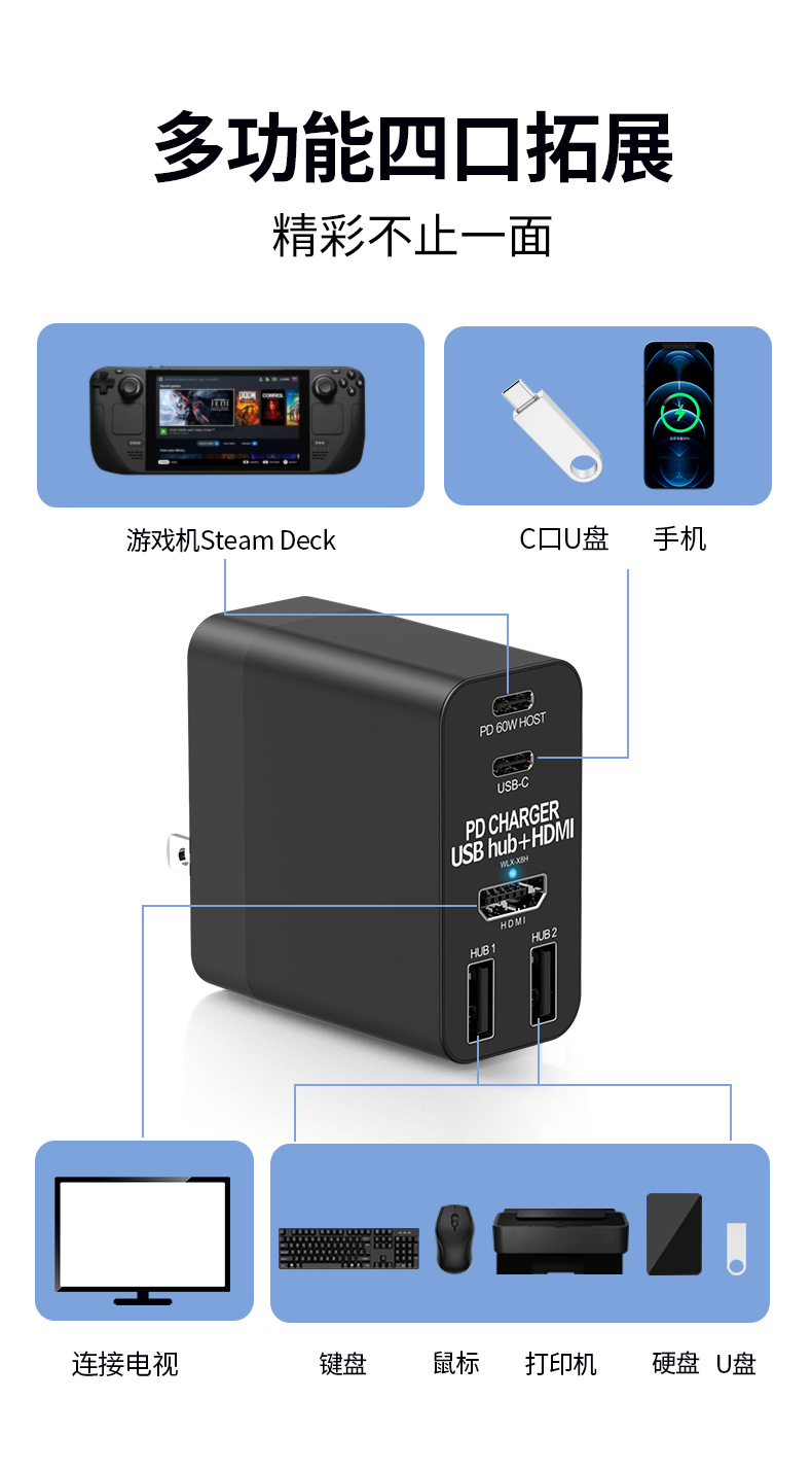 게임 휴대 전화 확장 질화 갈륨 휴대용 충전 스탠드 HDMI TV 화면 디스플레이를위한 4 in 1 확장 도크