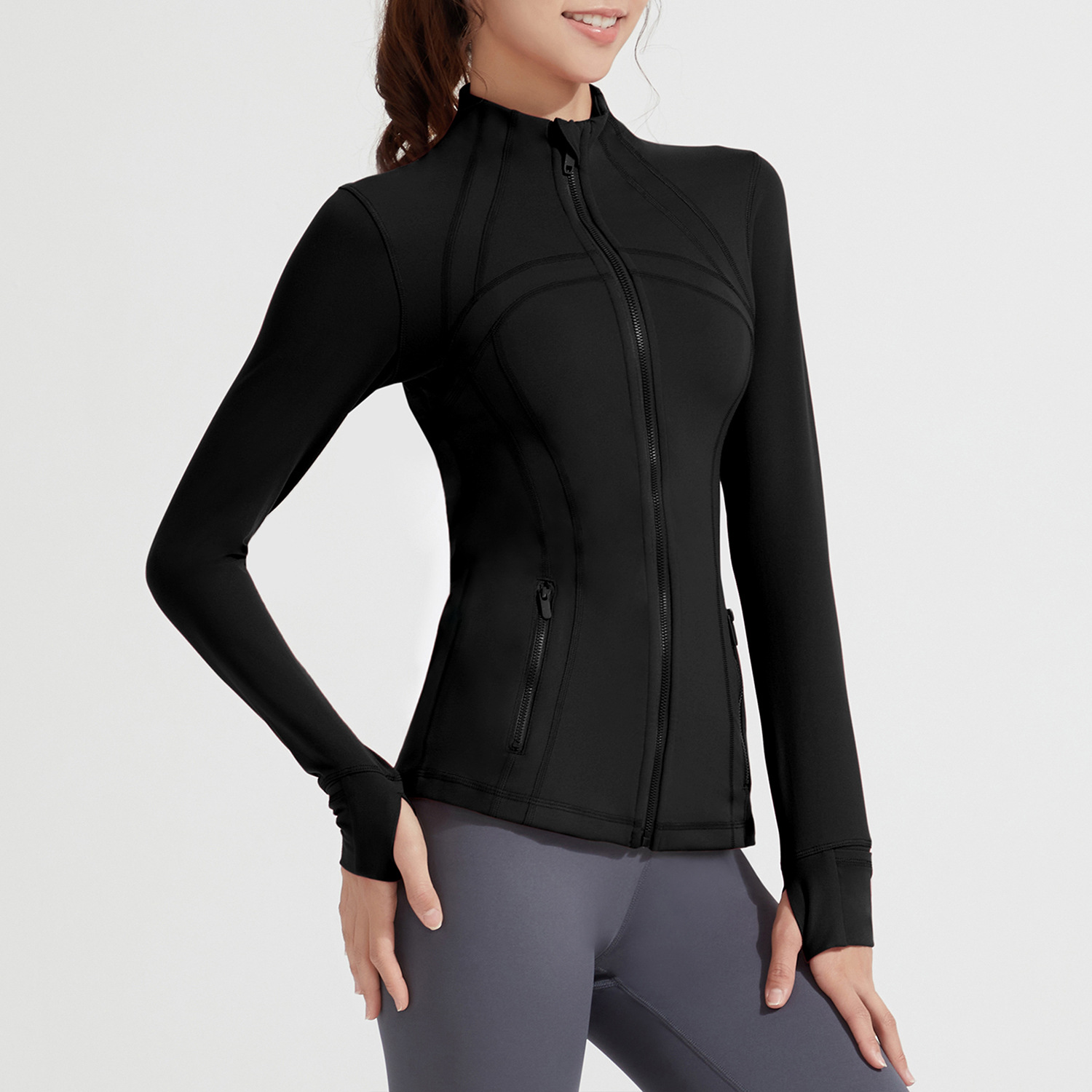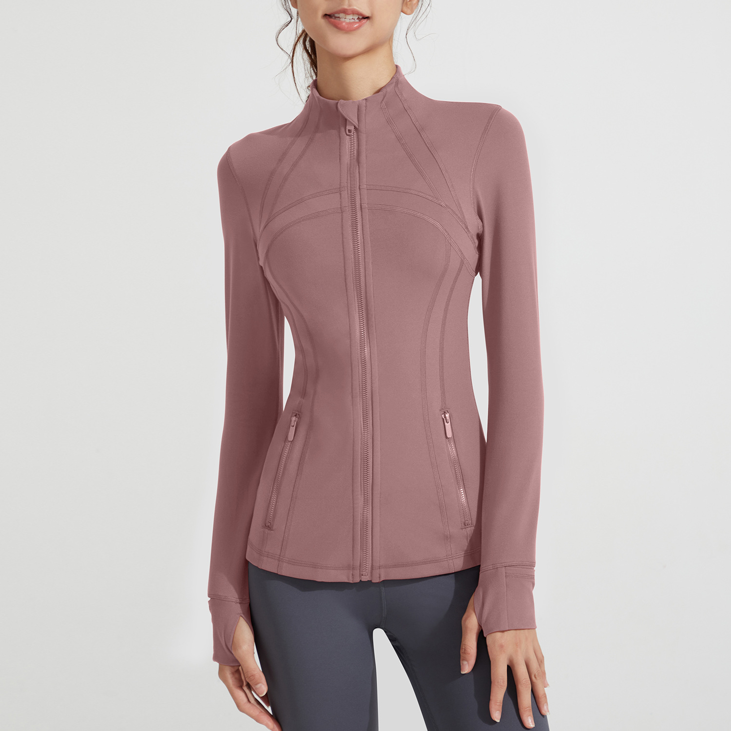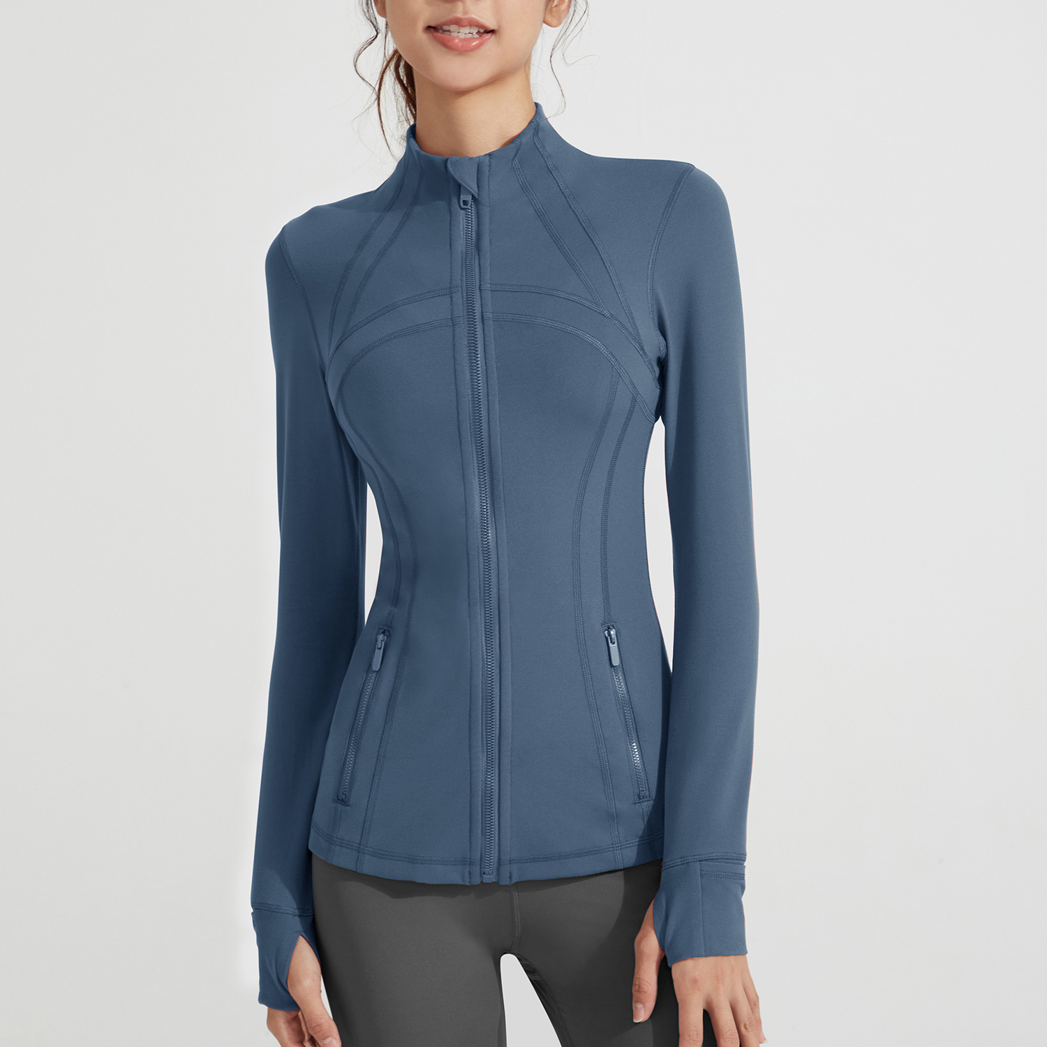 아테나 루루 뉴 요가 세트 재킷 누드 피트니스 세트 스탠드 칼라 긴 소매 누드 스포츠 재킷 탑