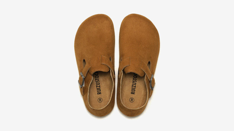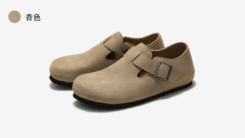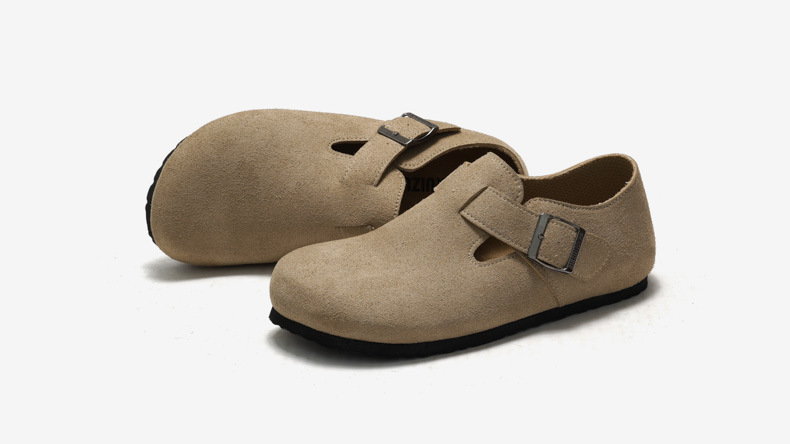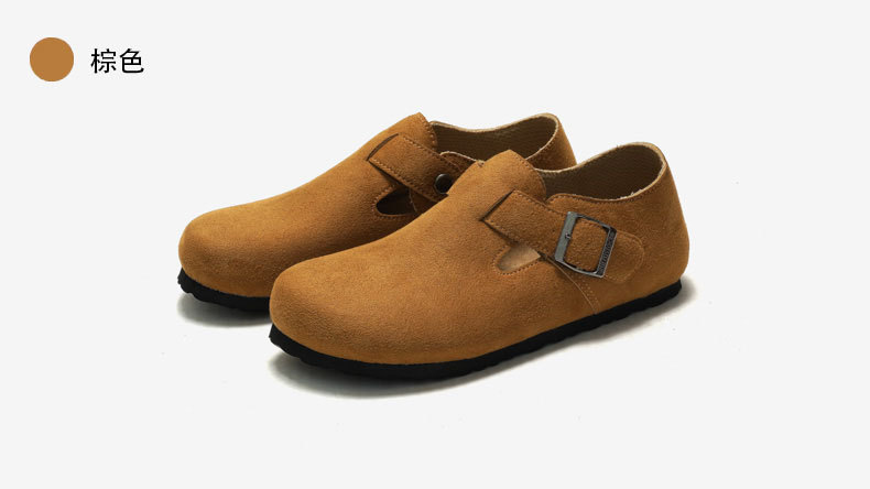 RUIZUSTOCK RUIZUSTOCK 가을과 겨울 여성용 코르크 캐주얼 신발 남성용 중성 발가락 가죽 신발 단층 신발 젖빛스토어 가기