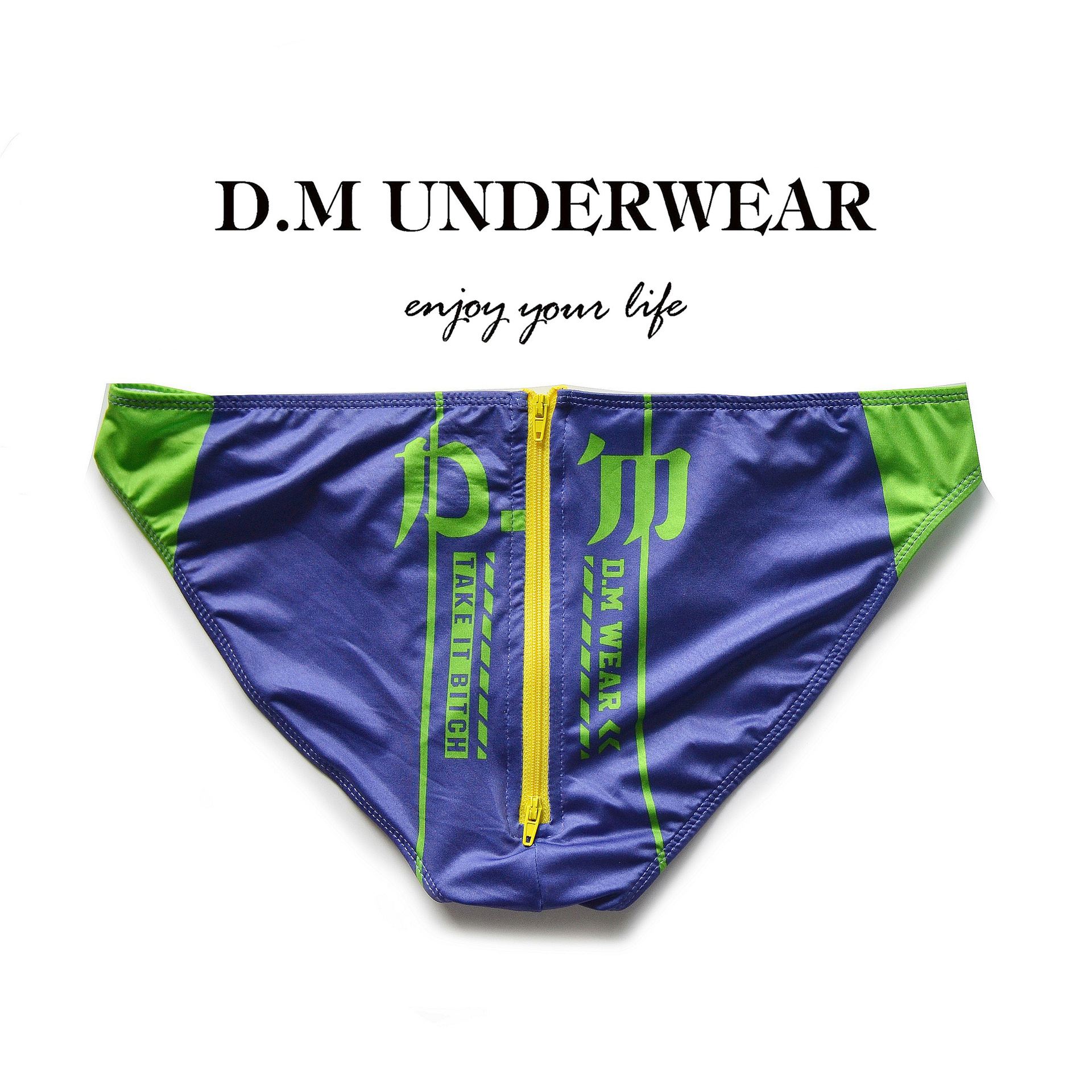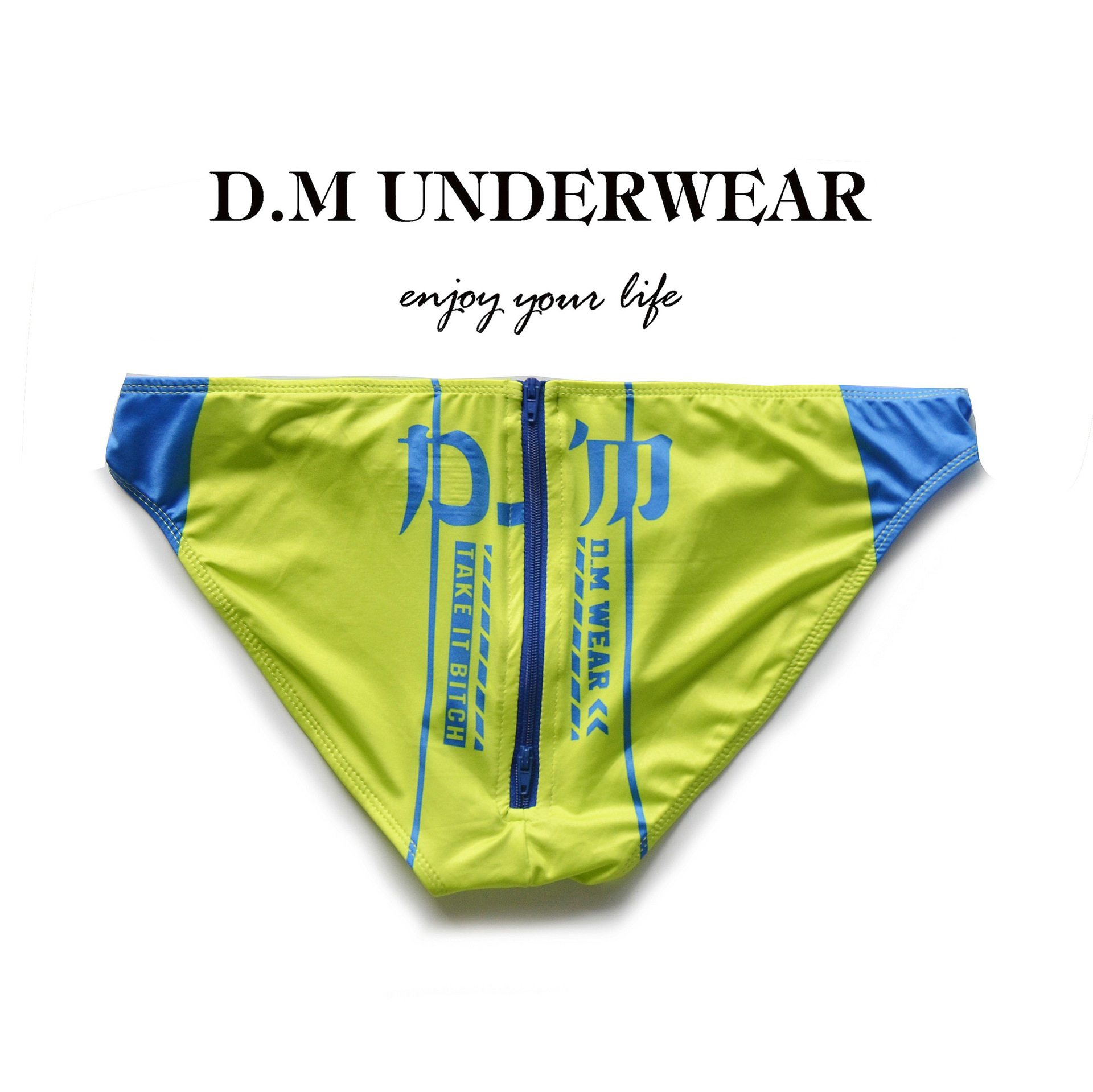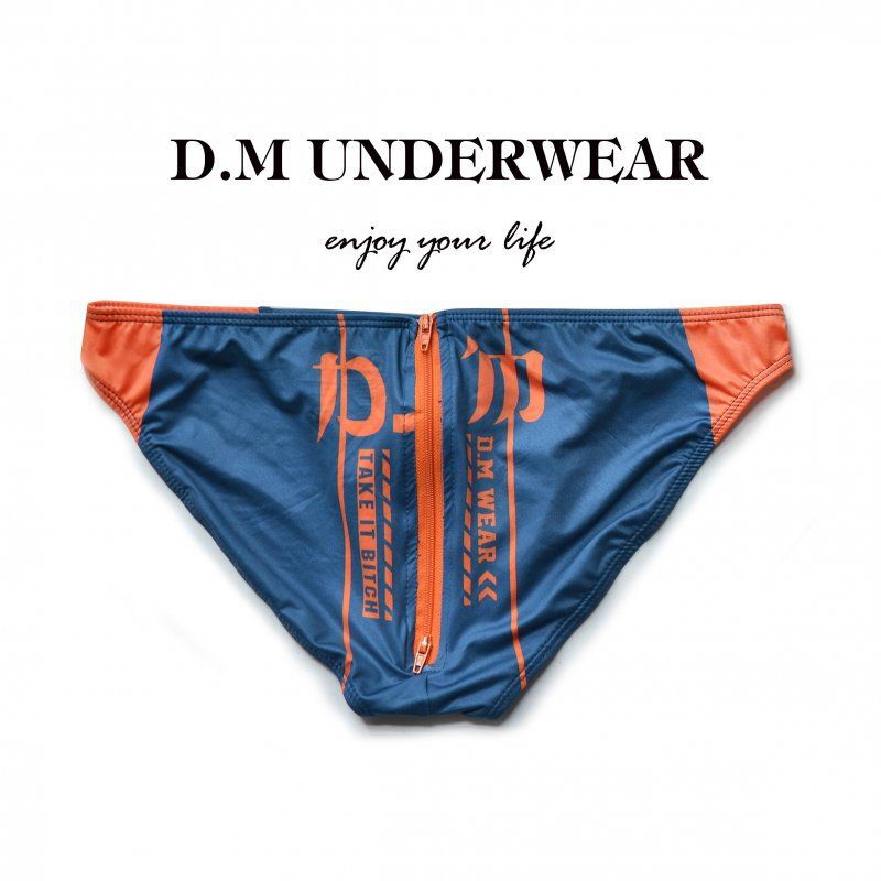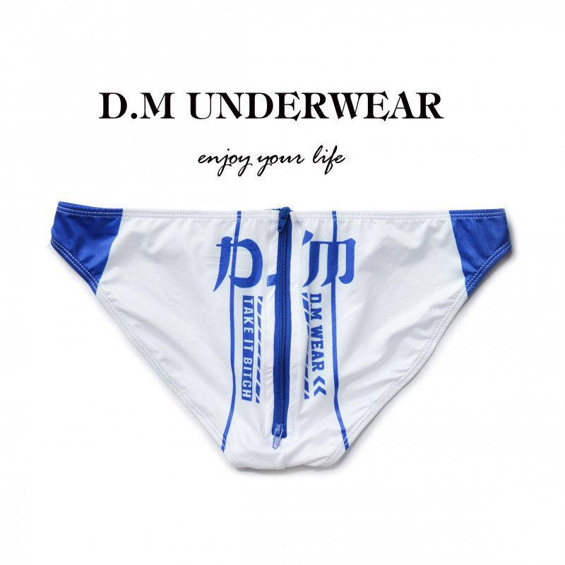 D.M 남자 팬티 낮은 허리 섹시한 인쇄 편지 엉덩이 지퍼 폴리 에스테르 우유 실크 탄성 남성 속옷 패션