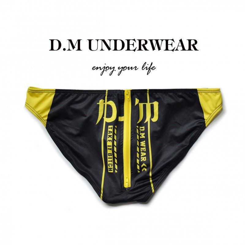 D.M 남자 팬티 낮은 허리 섹시한 인쇄 편지 엉덩이 지퍼 폴리 에스테르 우유 실크 탄성 남성 속옷 패션스토어 가기