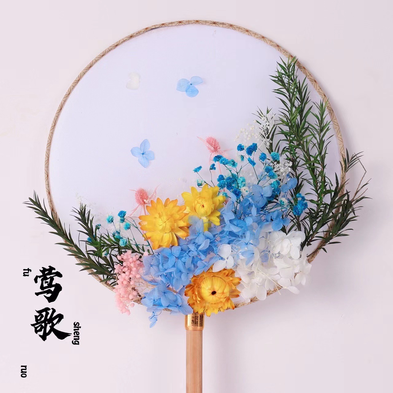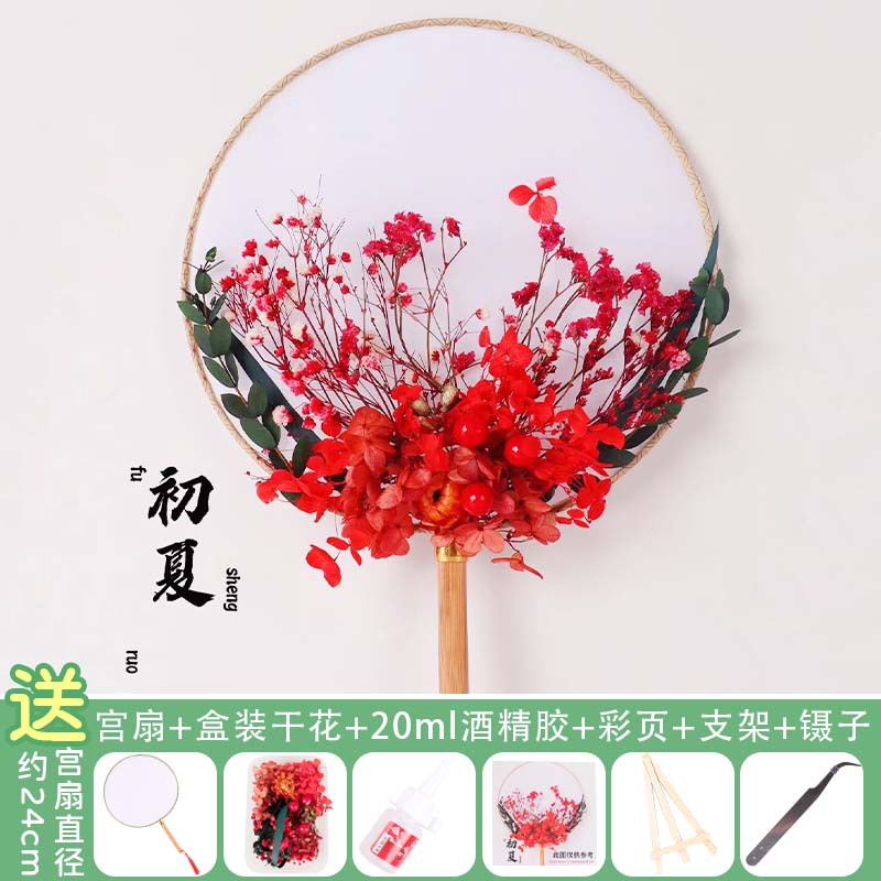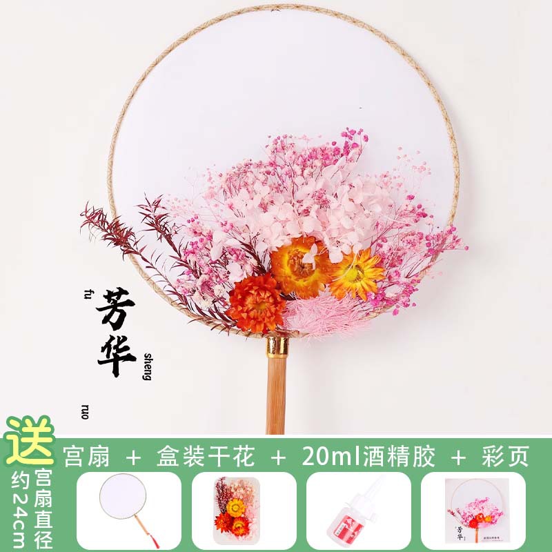 영원한 꽃 부채 DIY 수공예 재료 세트 영원한 꽃 고대 스타일 궁중 부채 어린이 부모 자식 선물 스승의 날