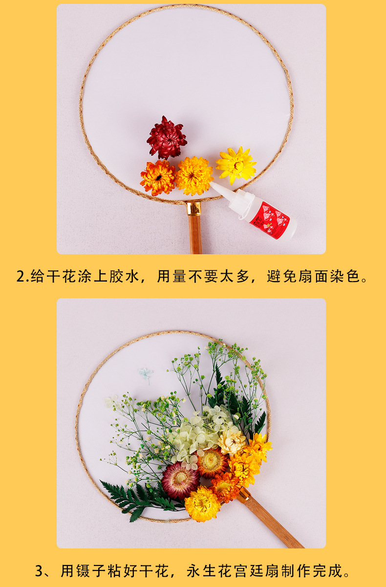 영원한 꽃 부채 DIY 수공예 재료 세트 영원한 꽃 고대 스타일 궁중 부채 어린이 부모 자식 선물 스승의 날스토어 가기