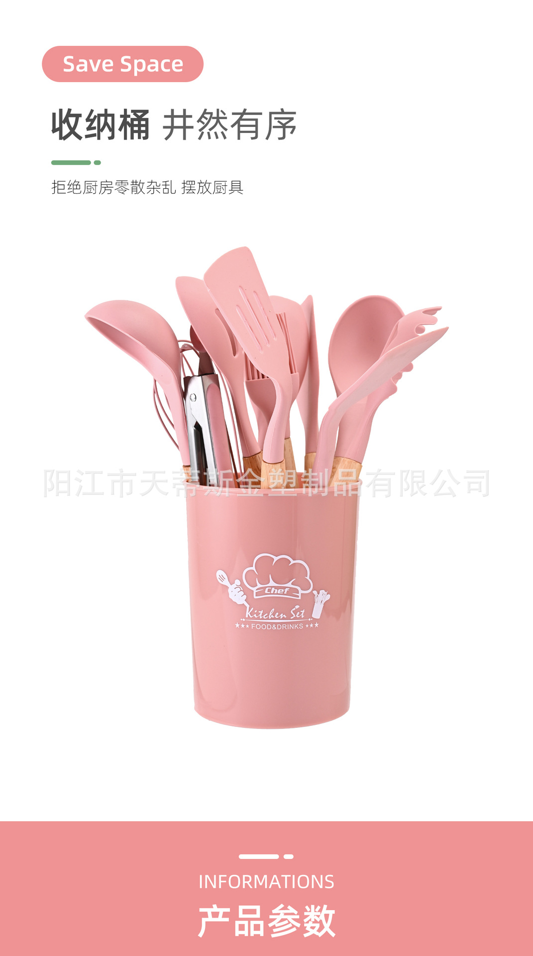 나무 손잡이 실리콘 주방 용품 세트 보관 배럴 수프 스푼 세트 주방 도구 붙지 않는 팬 삽 가정용 요리 주둥이스토어 가기