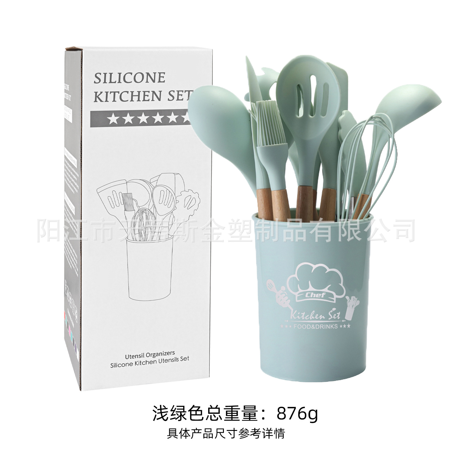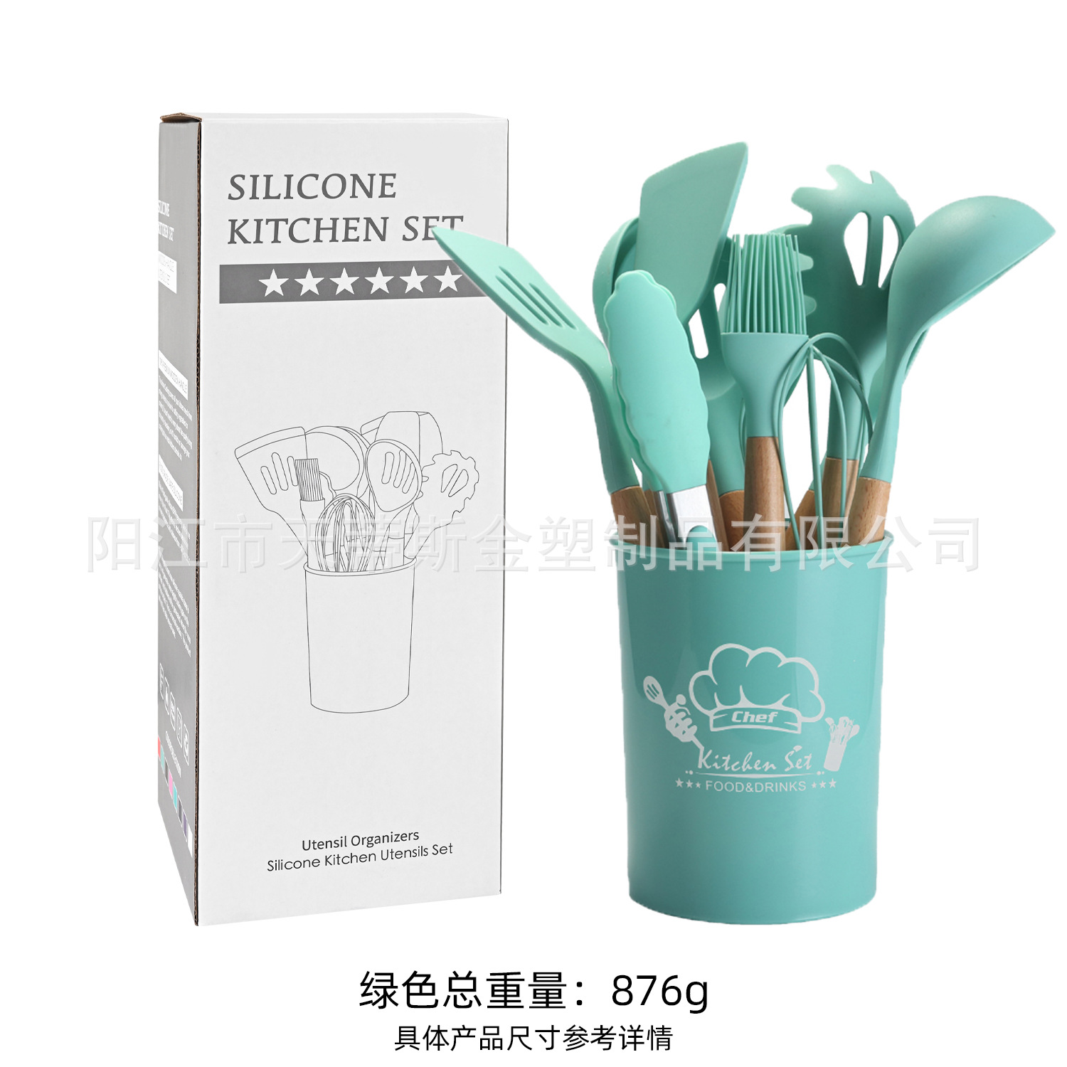 • 850g 나무 손잡이 11 조각 세트 녹색 큰 배럴 컬러 박스