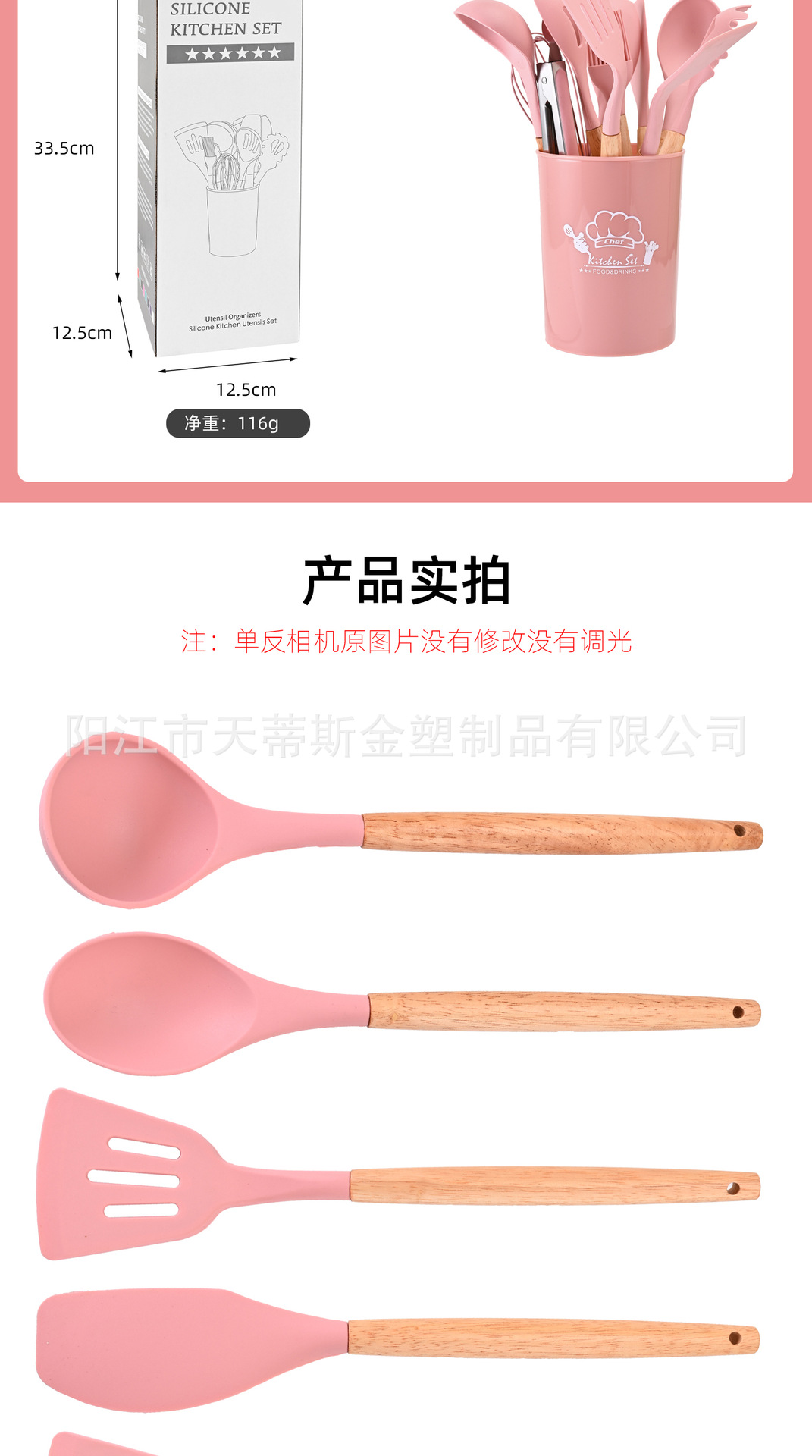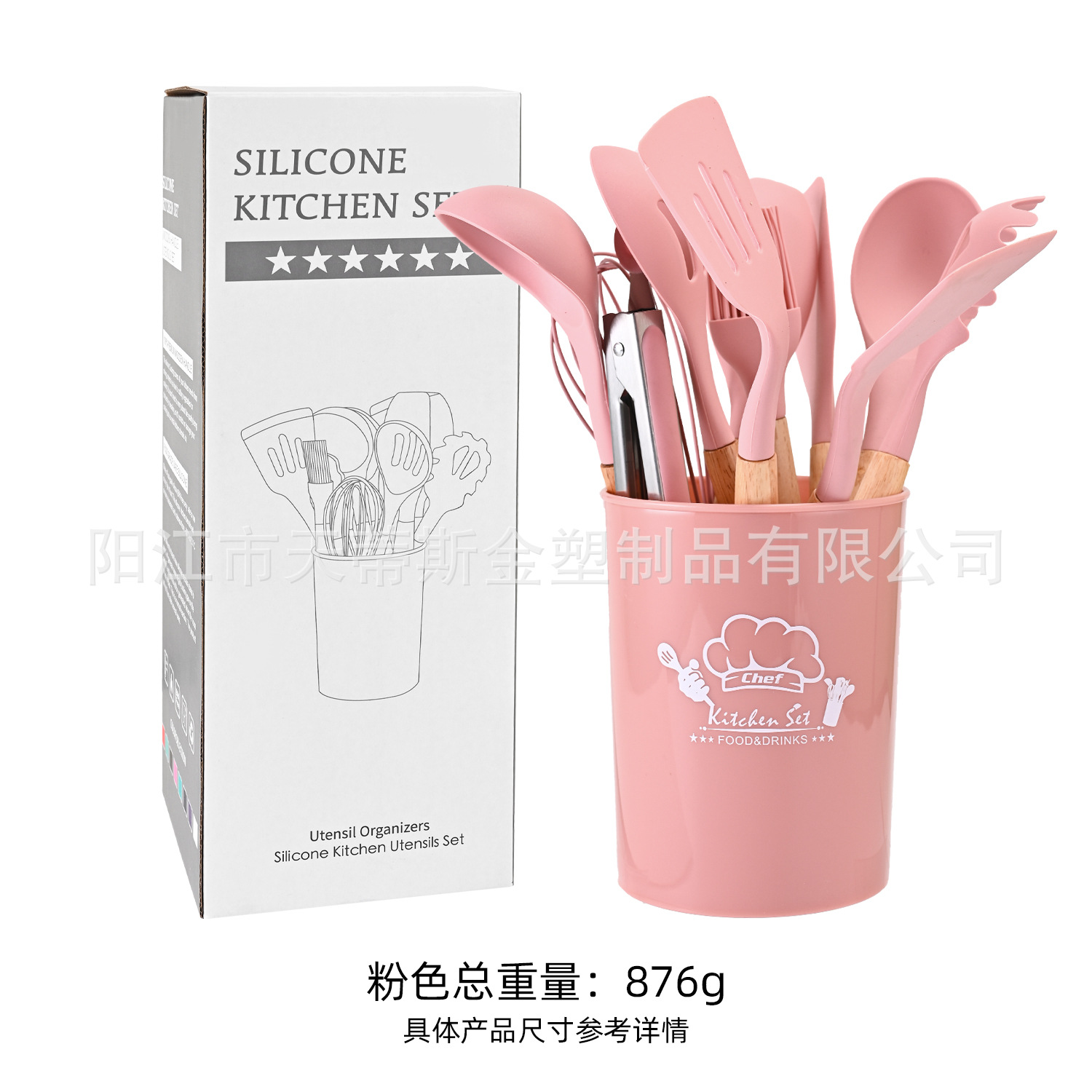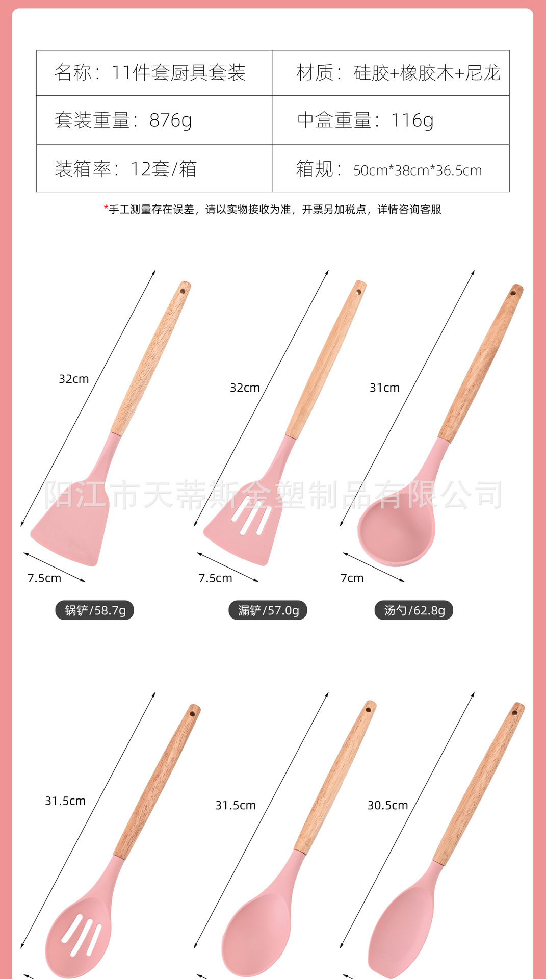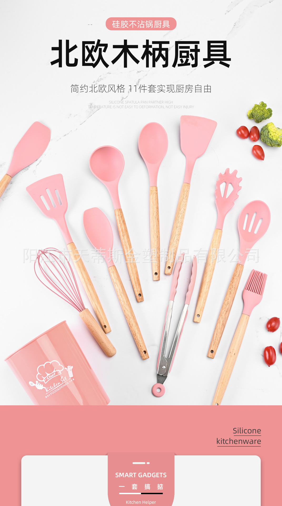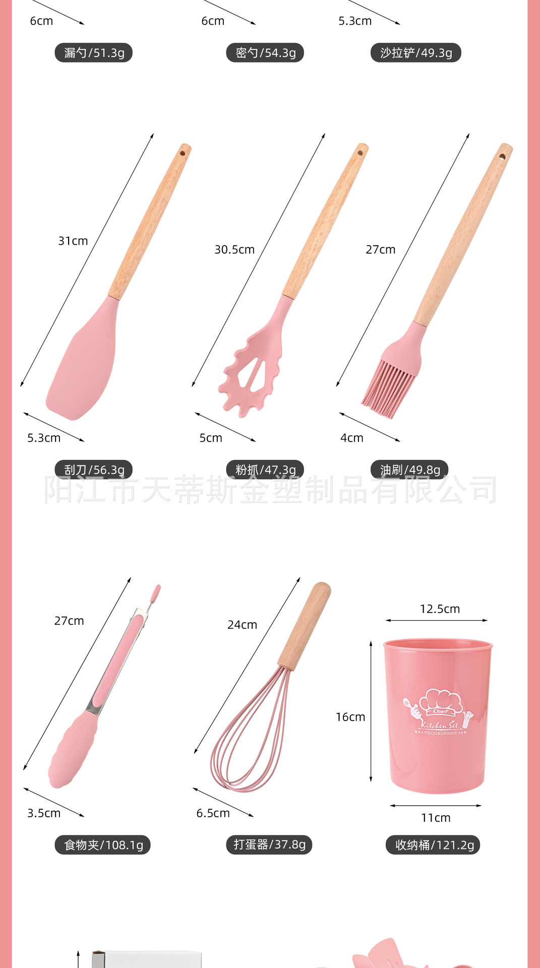 • 850g 나무 손잡이 11 조각 세트 핑크 버킷 컬러 박스