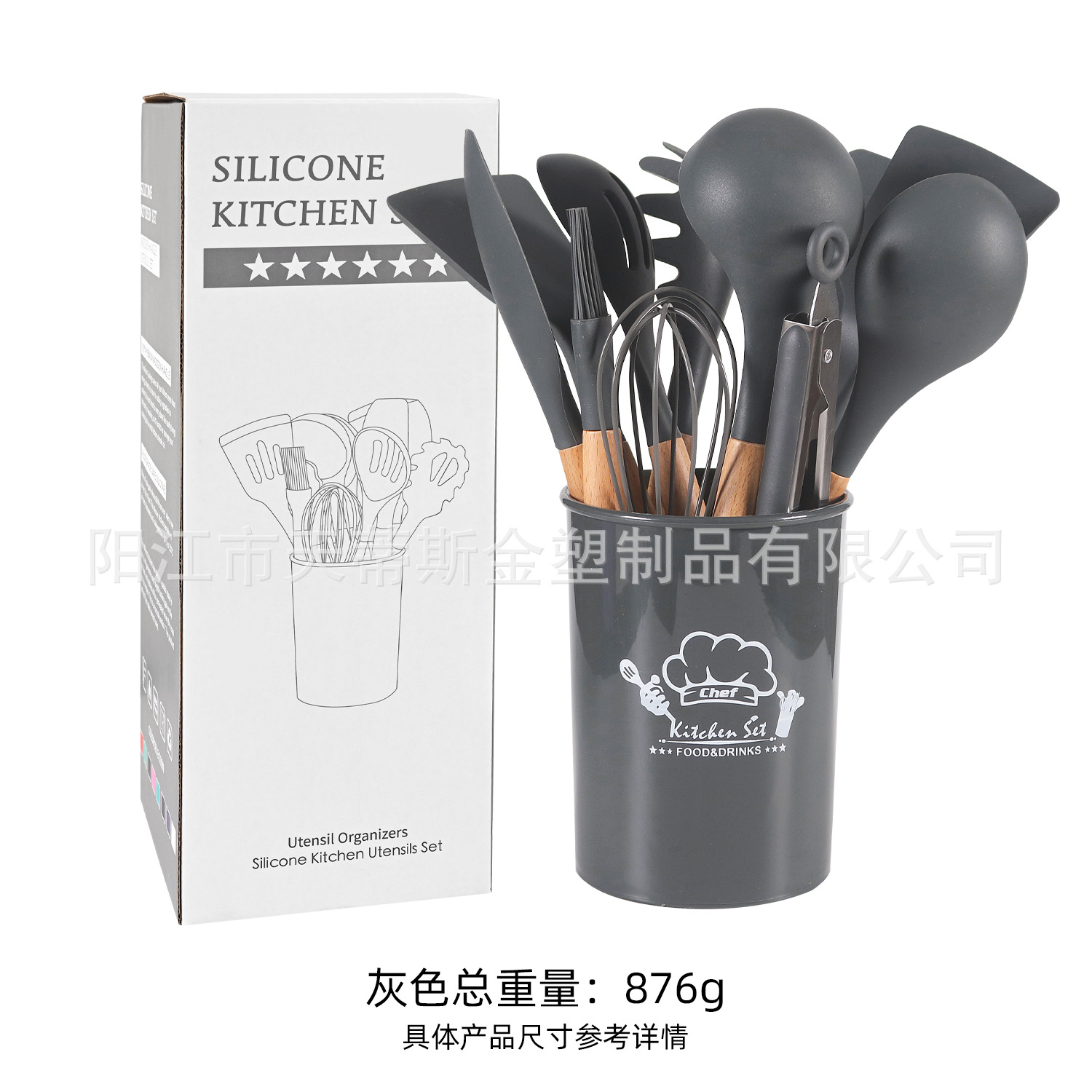 • 850g 나무 손잡이 11 조각 세트 회색 큰 배럴 컬러 박스