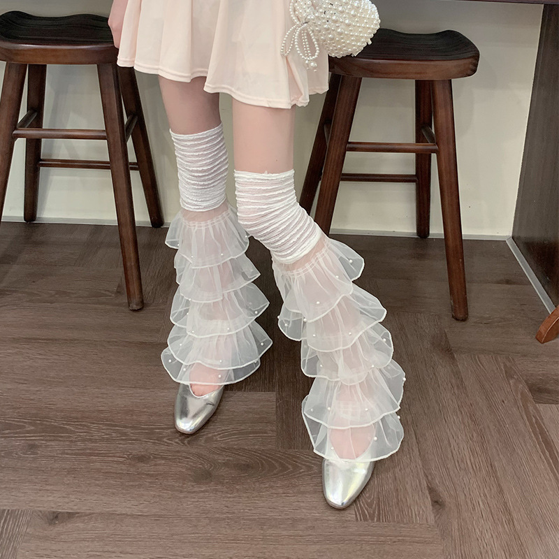 틈새 스파이스 걸스 달콤하고 시원하고 순수한 y2k 하위 문화 레이스 스티칭 다리 커버 케이크 레이스 요정 더미 양말 커버
