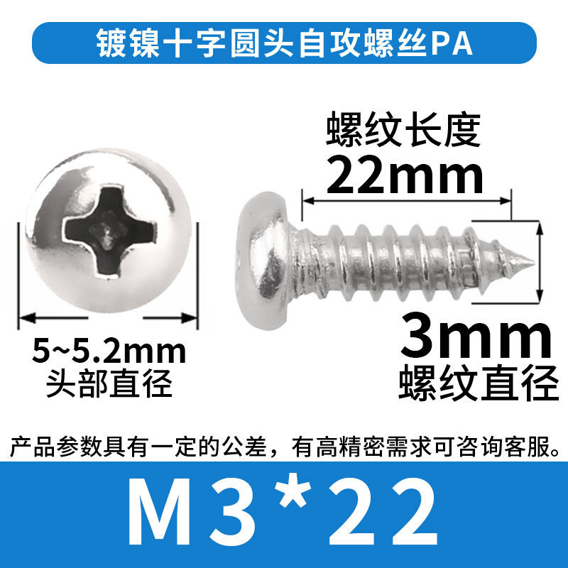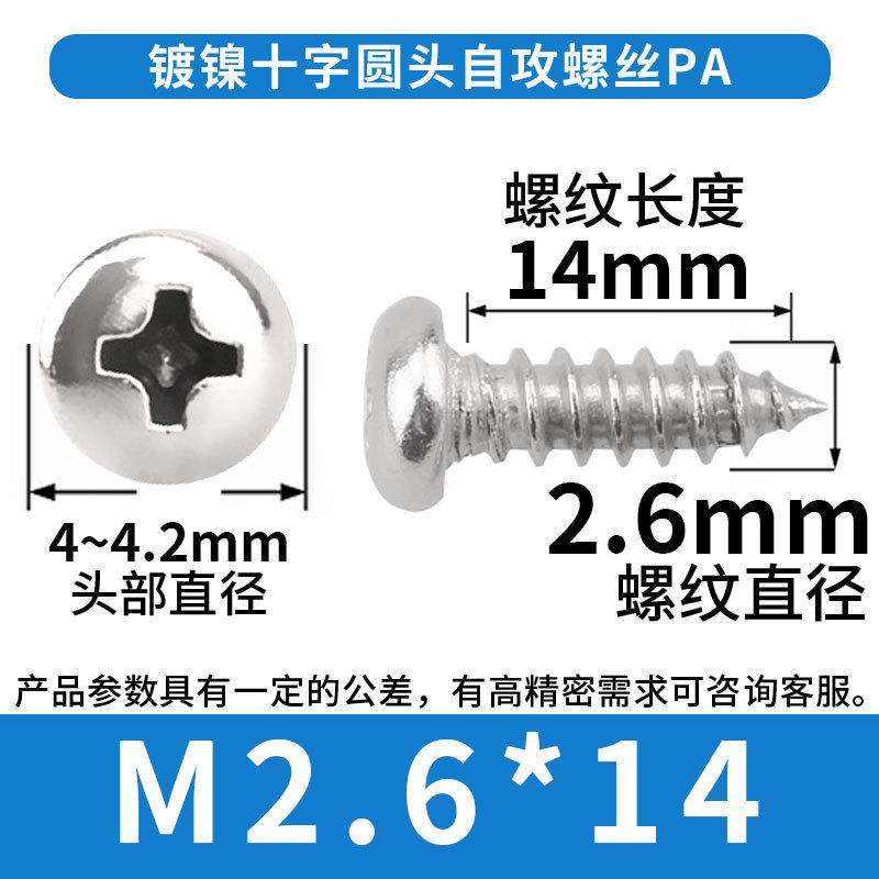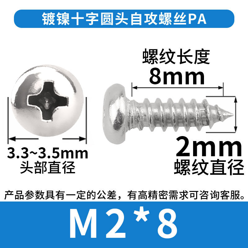 니켈 도금 PA 원형 헤드 태핑 나사 도매 소형 나사 교차 매입 팬 헤드 태핑 나사 M2M3M4M5