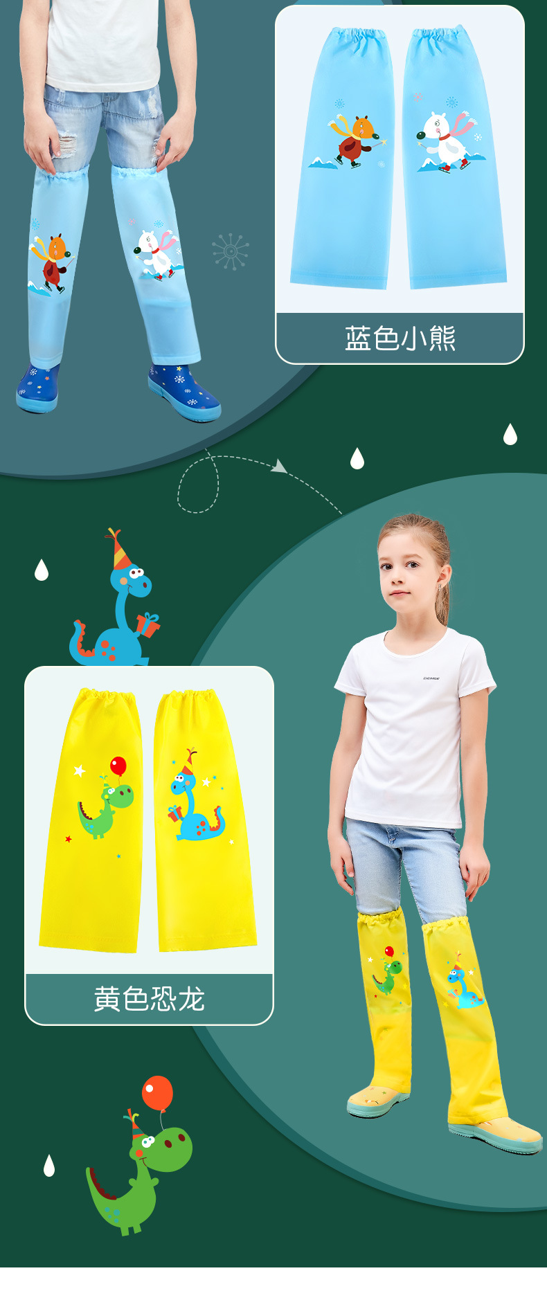 Mu Meng 어린이 고층 레인 팬츠 세트 유치원 오염 방지 다리 세트 소년 소녀 방수 바지 아기 방수 다리 세트